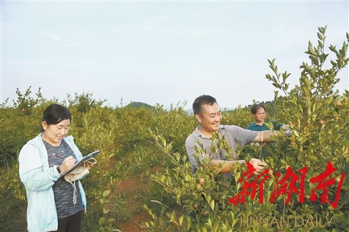 “这是‘小黄球’,‘湘林78号’,皮薄个大,今年表现很不错。”