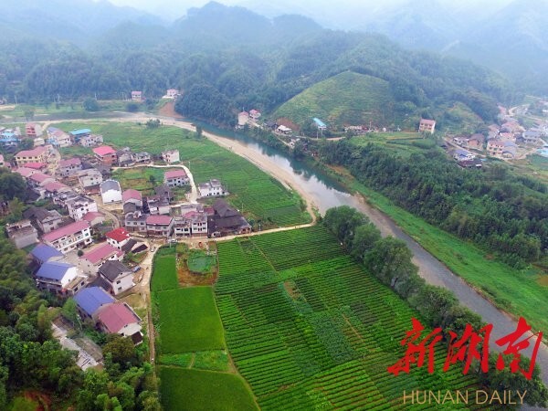 (9月13日,安化县江南镇金田村麻溪河畔,500亩优质茶园基地成片相连。湖南日报记者 徐行 摄)