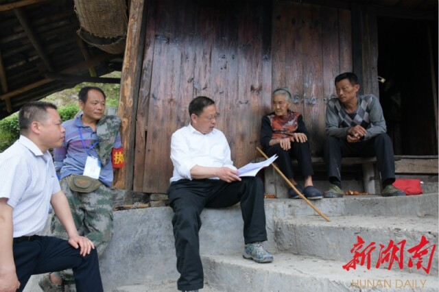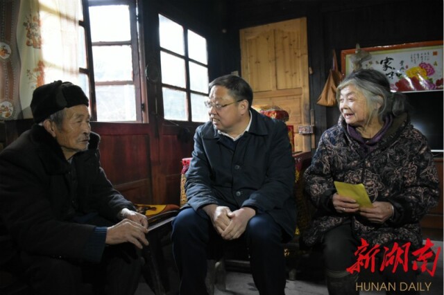 (2019年6月3日,蒙汉(左)看望慰问“板凳硬汉”胡玉山。本文图片均由溆浦县委宣传部提供。)