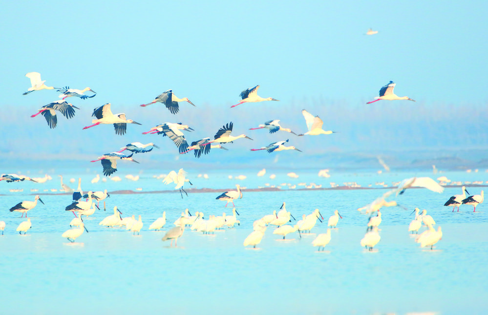 东洞庭湖湿地良好的生态环境引候鸟群集