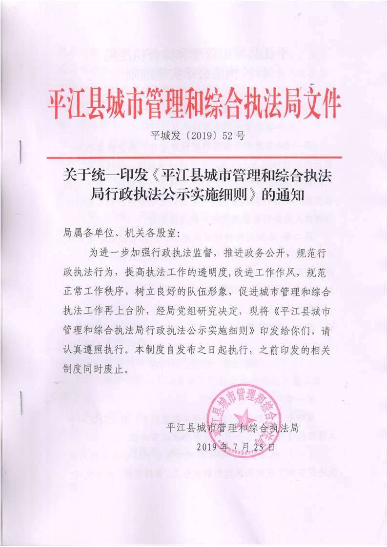 平江县城市管理和综合执法局行政执法公示实施细则