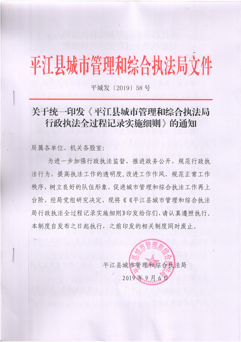 平江县城市管理和综合执法局行政执法全过程记录实施细则