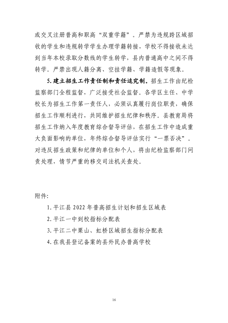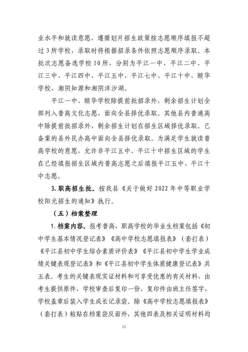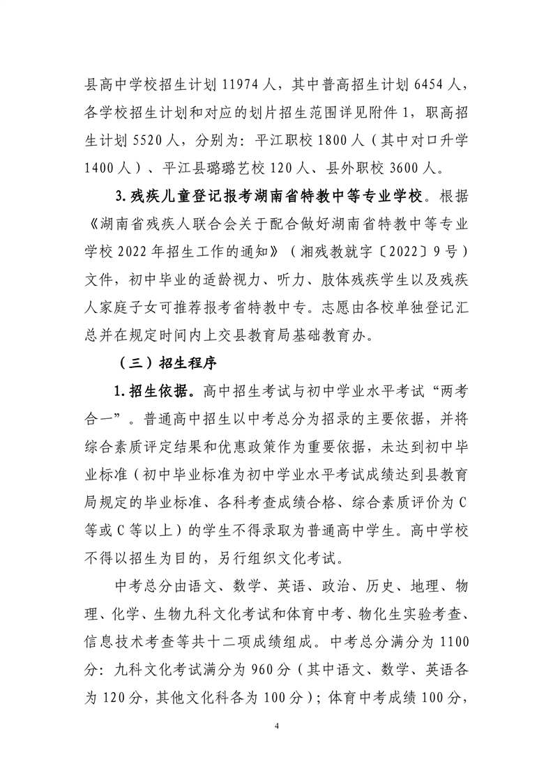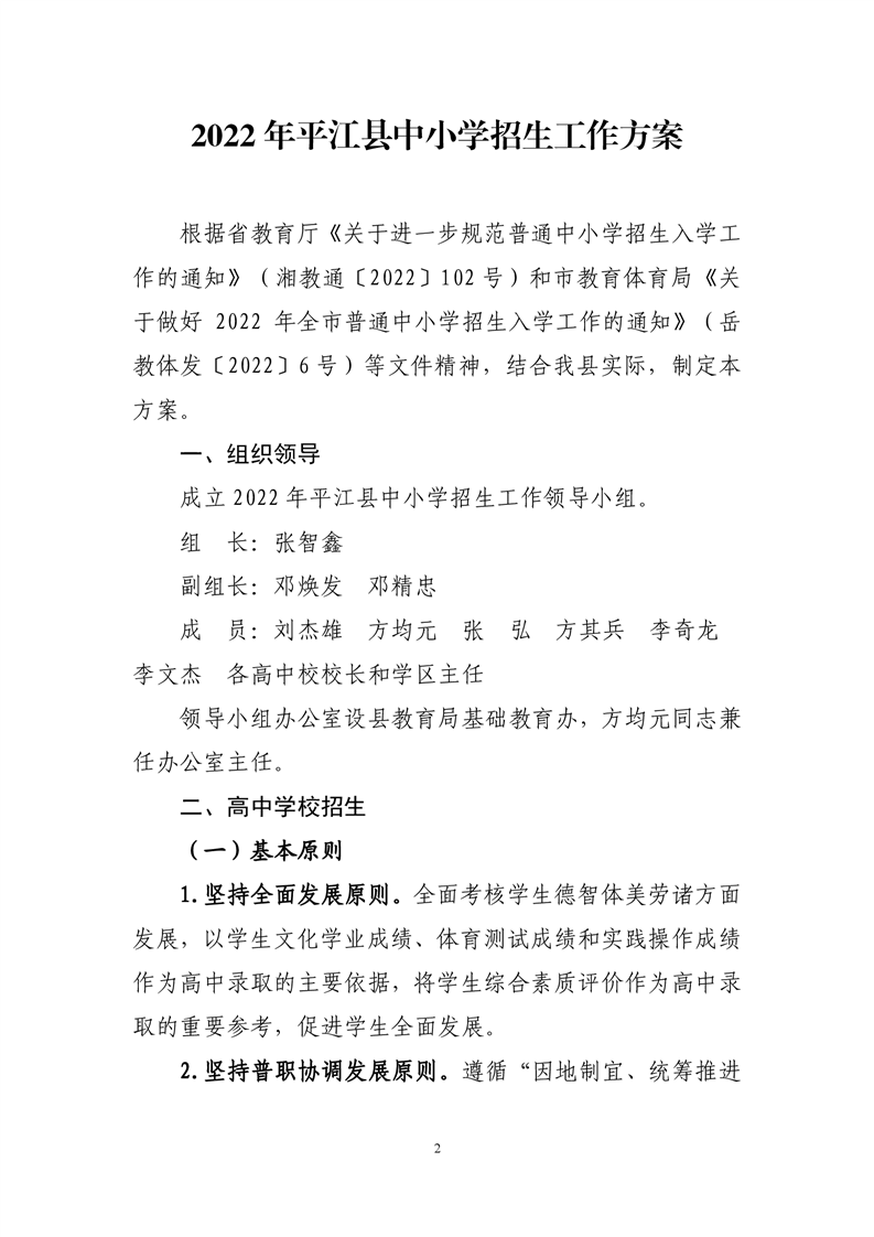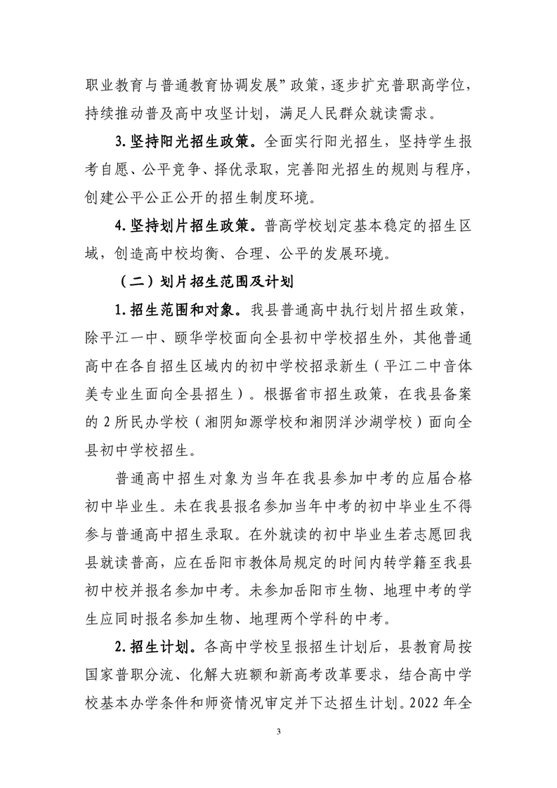 2022年平江县中小学招生工作方案