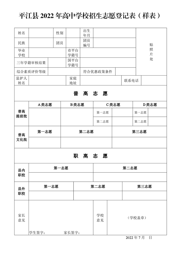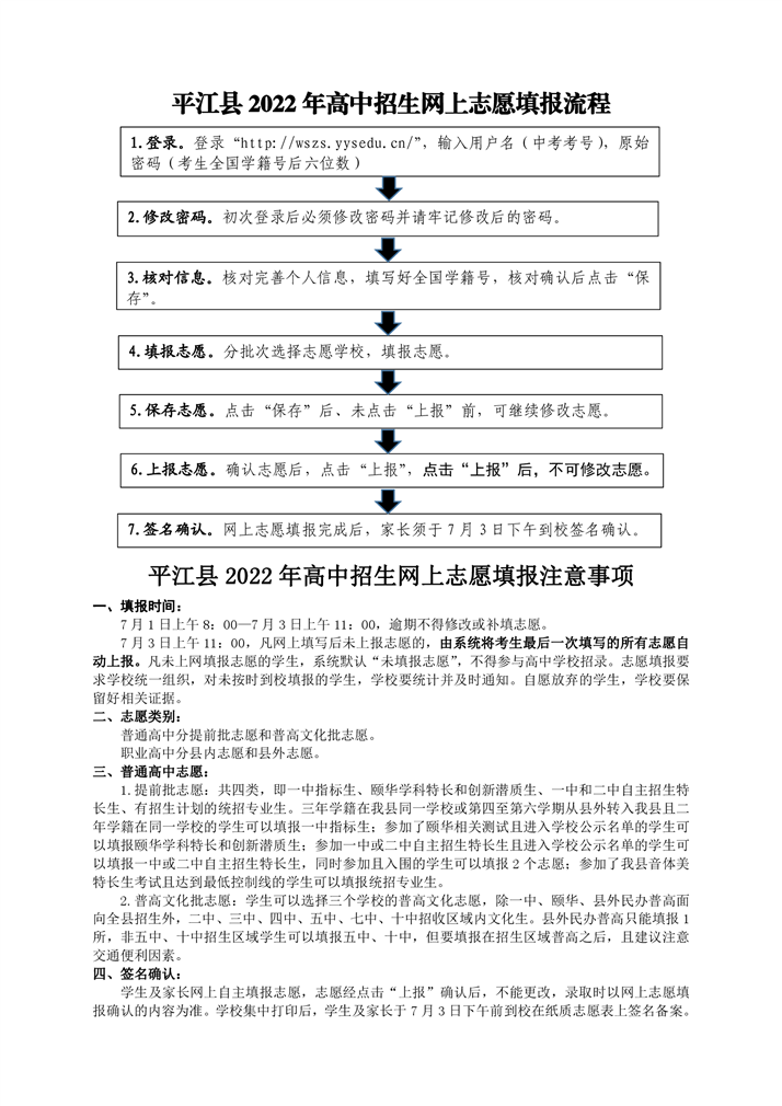 平江县 2022 年高中招生网上志愿填报流程
