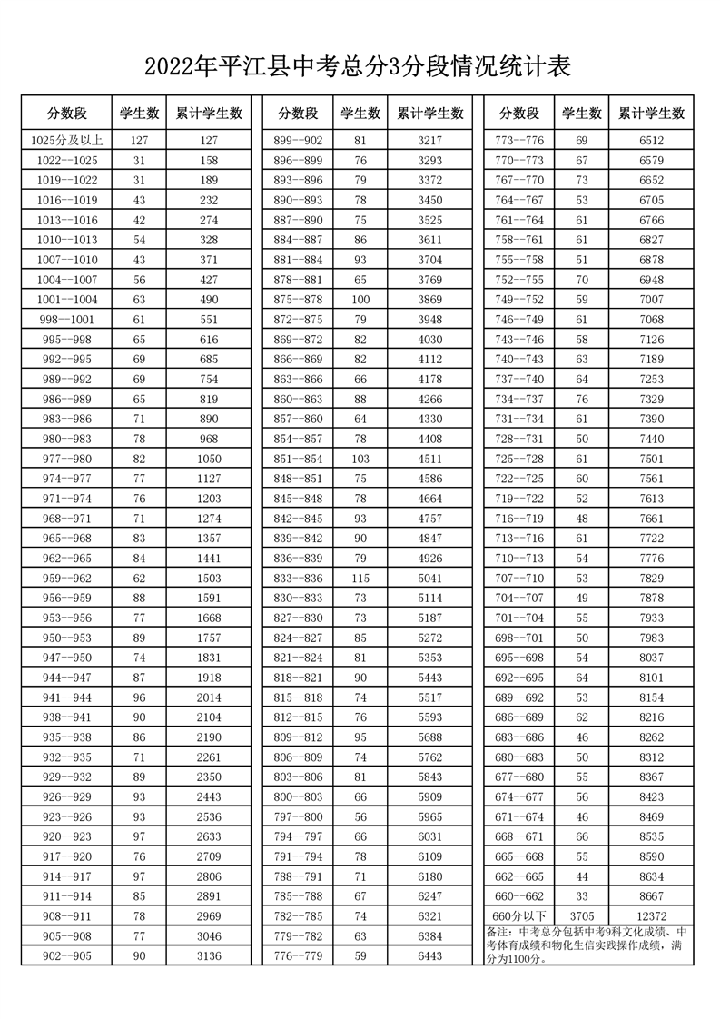 关注!2022年平江县学生初中学业水平考试成绩3分段情况统计出来了!