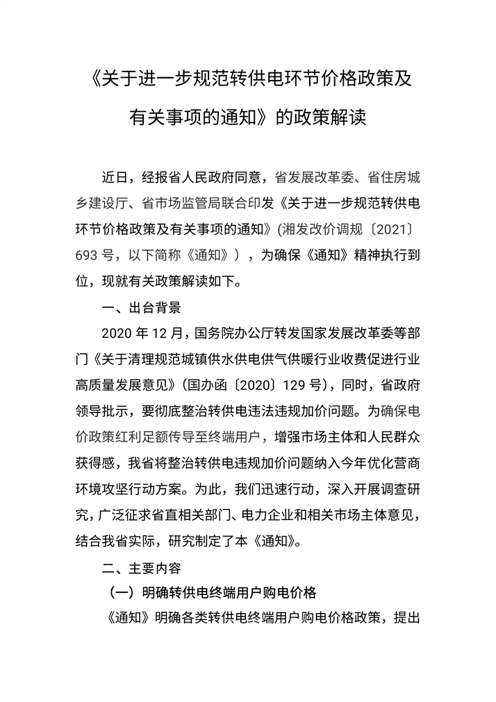《关于进一步规范转供电环节价格政策及有关事项的通知》的政策解读
