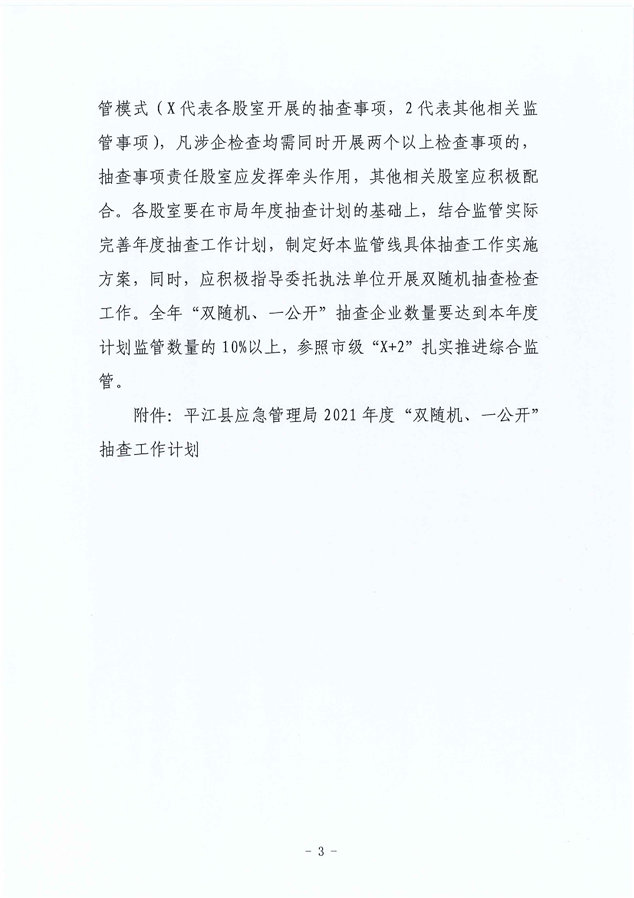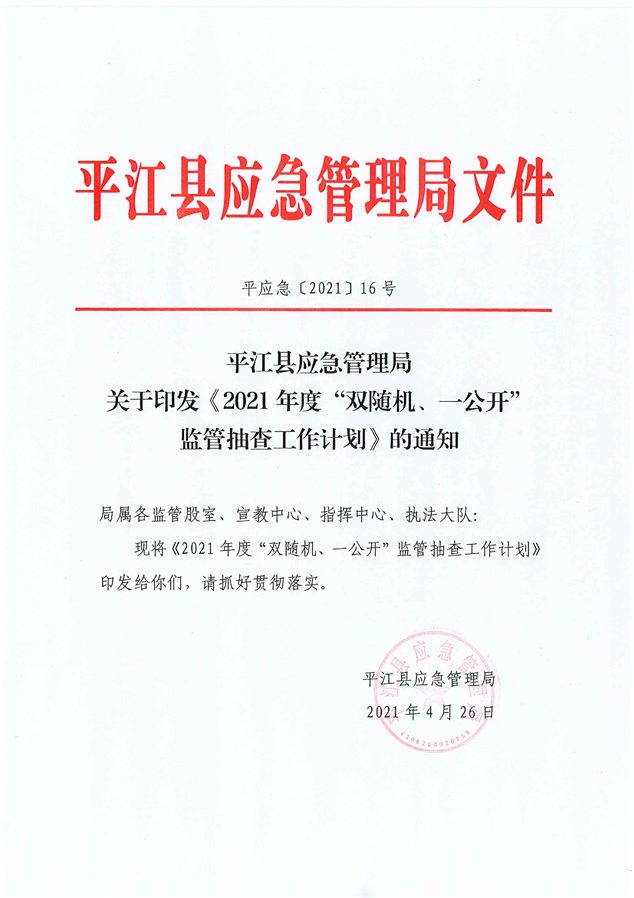 关于印发《2021年度“双随机、一公开”监管抽查工作计划》的通知
