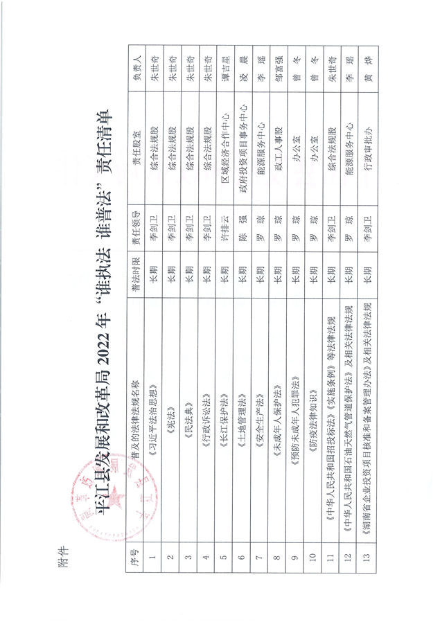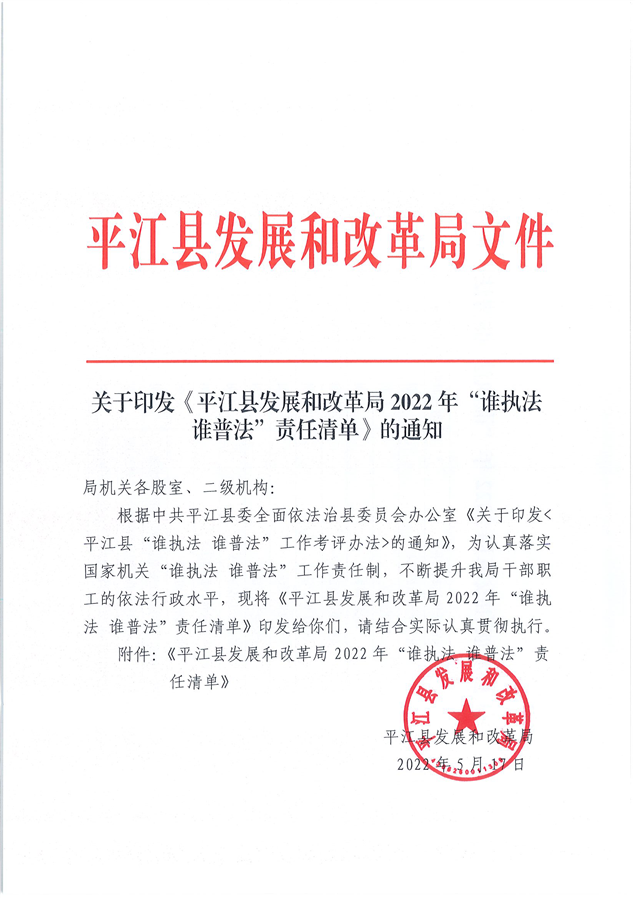 平江县发展和改革局2022年“谁执法 谁普法”责任清单