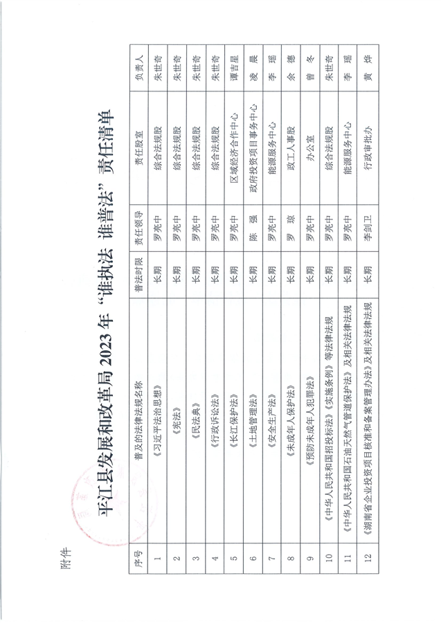 平江县发展和改革局2023年“谁执法 谁普法”责任清单