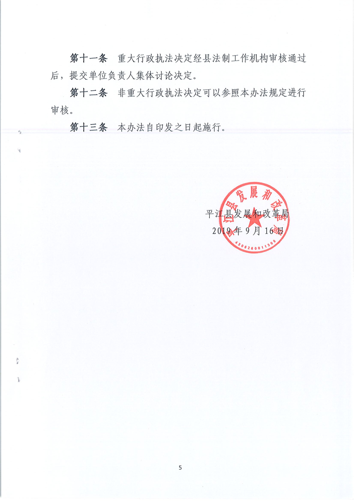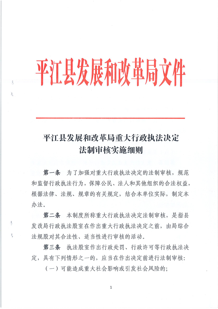 平江县发展和改革局重大行政执法决定法制审核实施细则