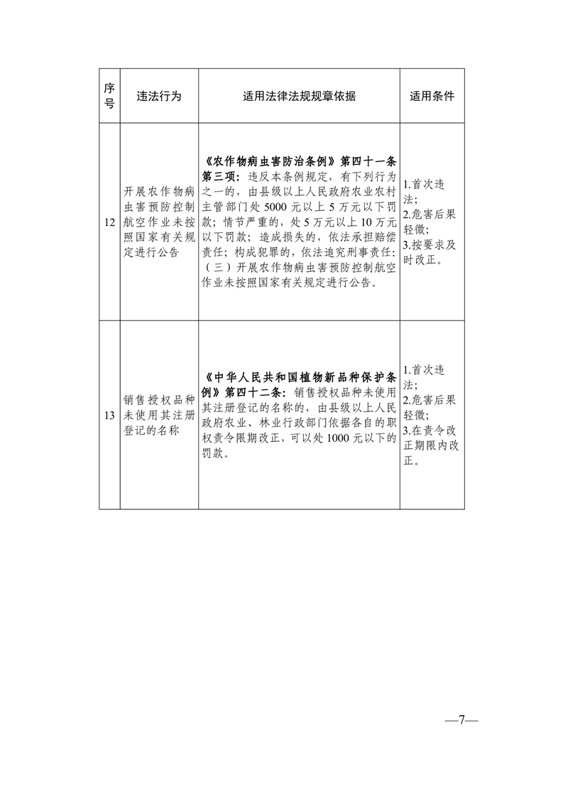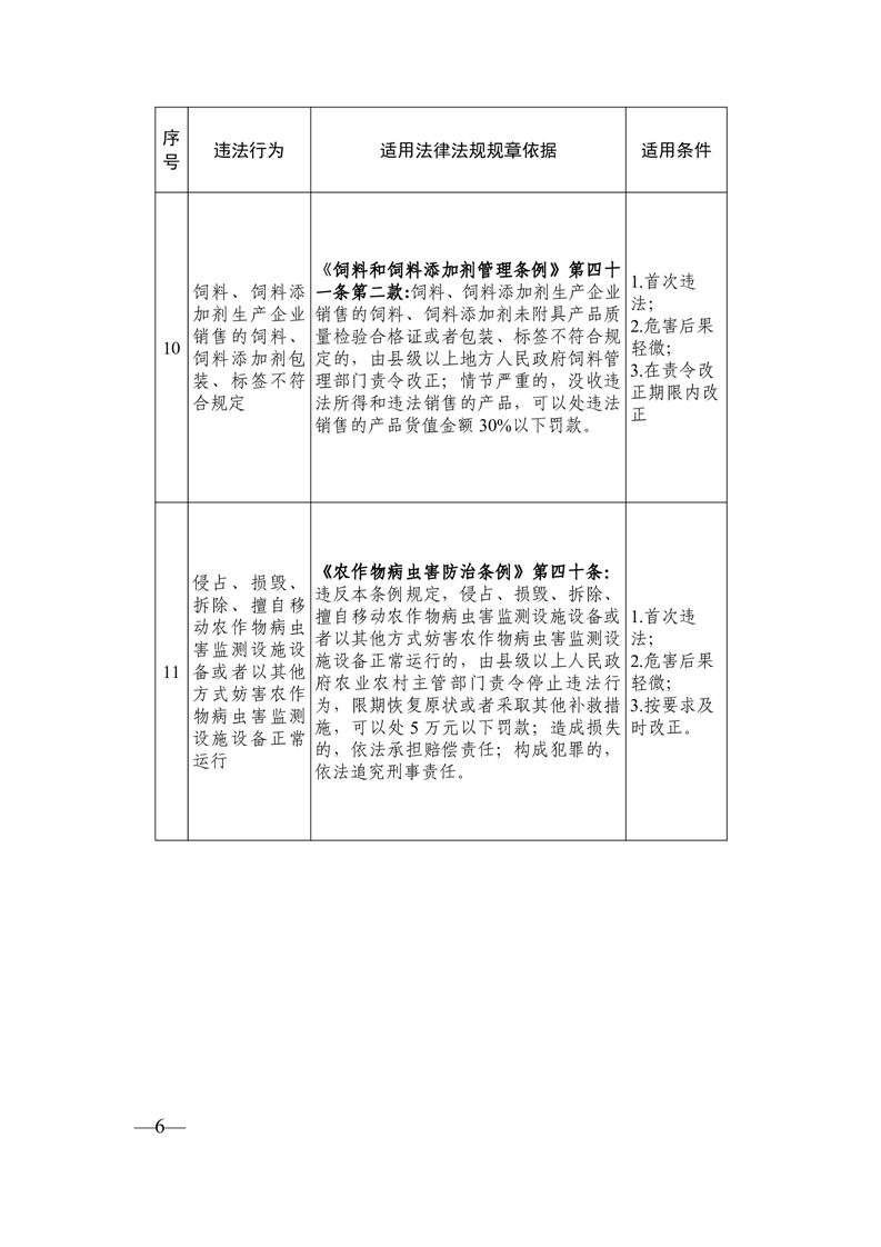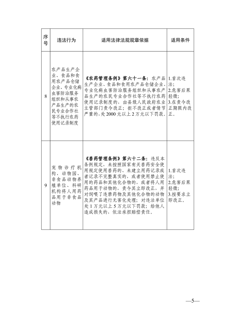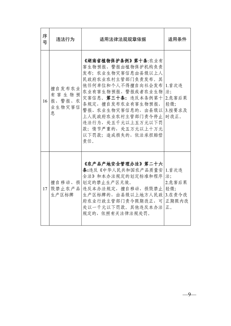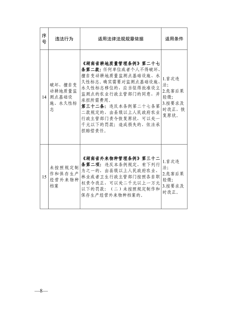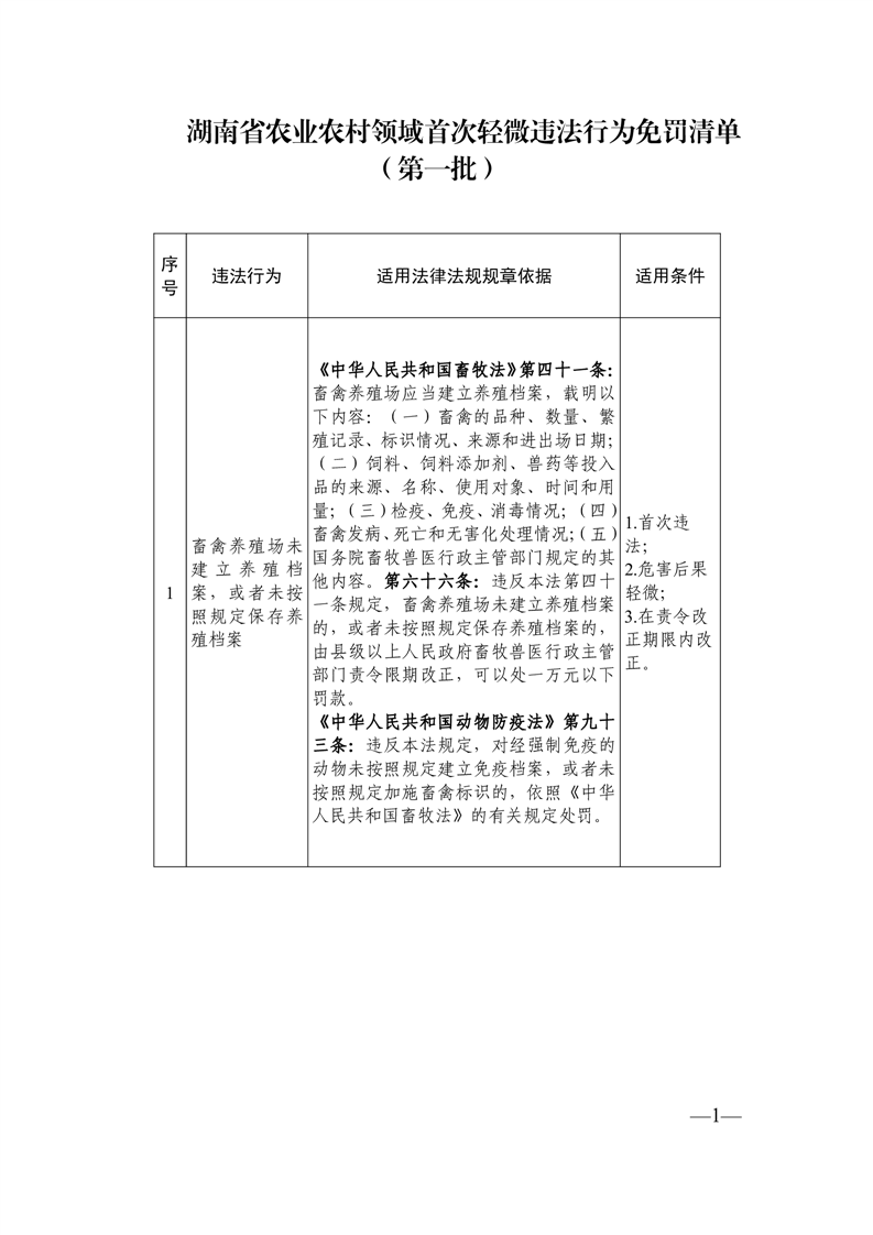 湖南省农业农村领域首次轻微违法行为免罚清单