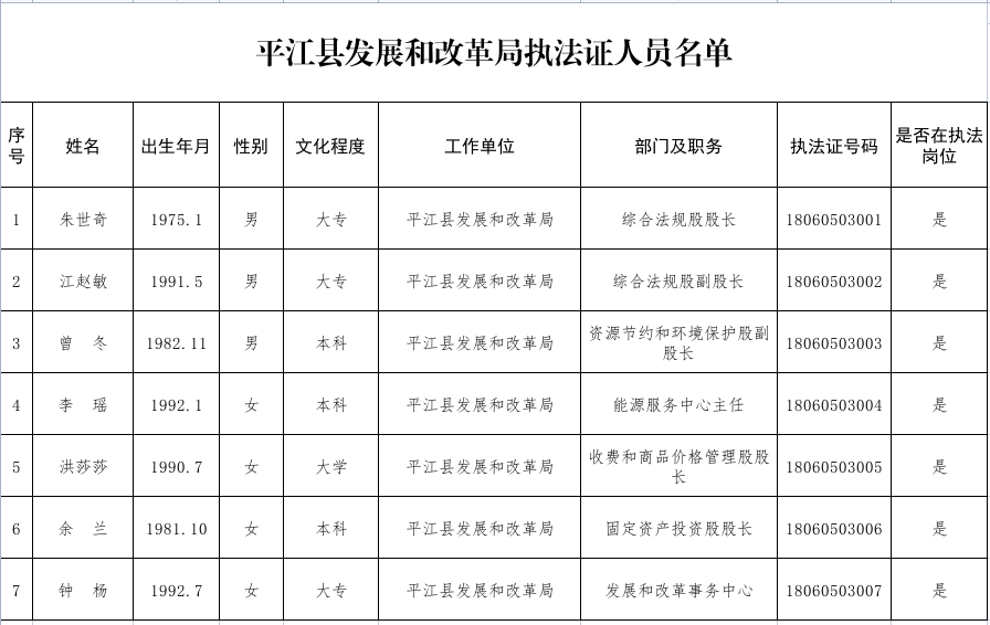 平江县发展和改革局执法证人员名单(2023)