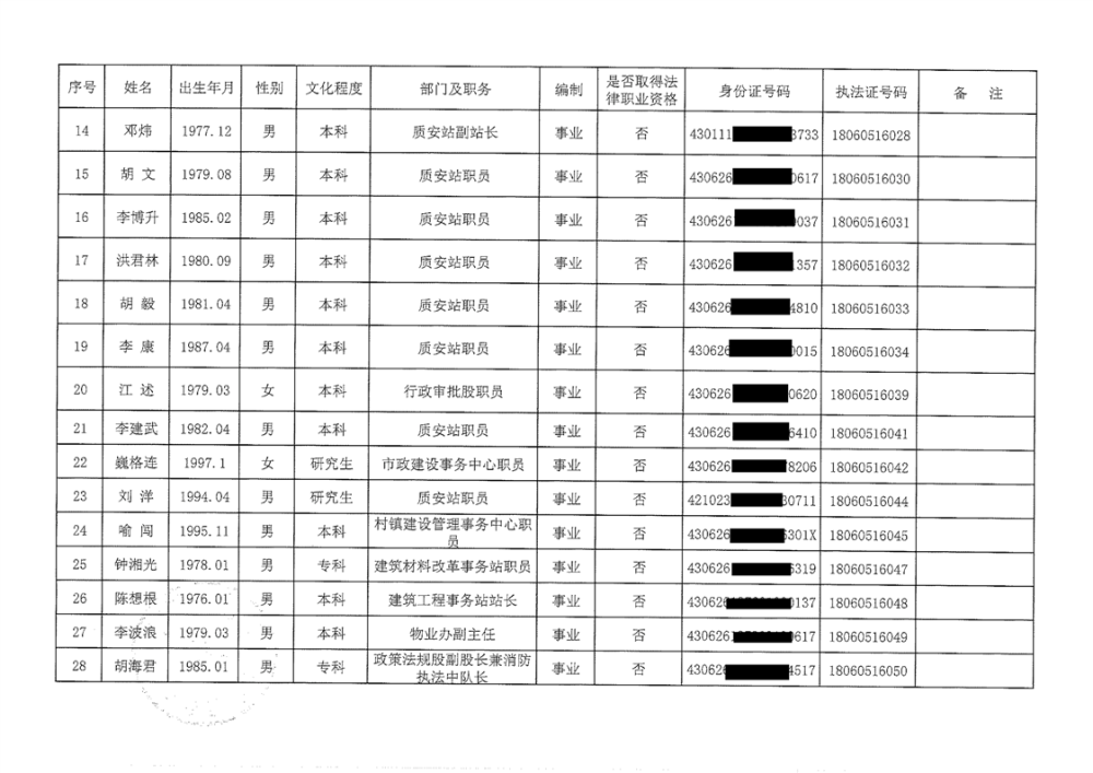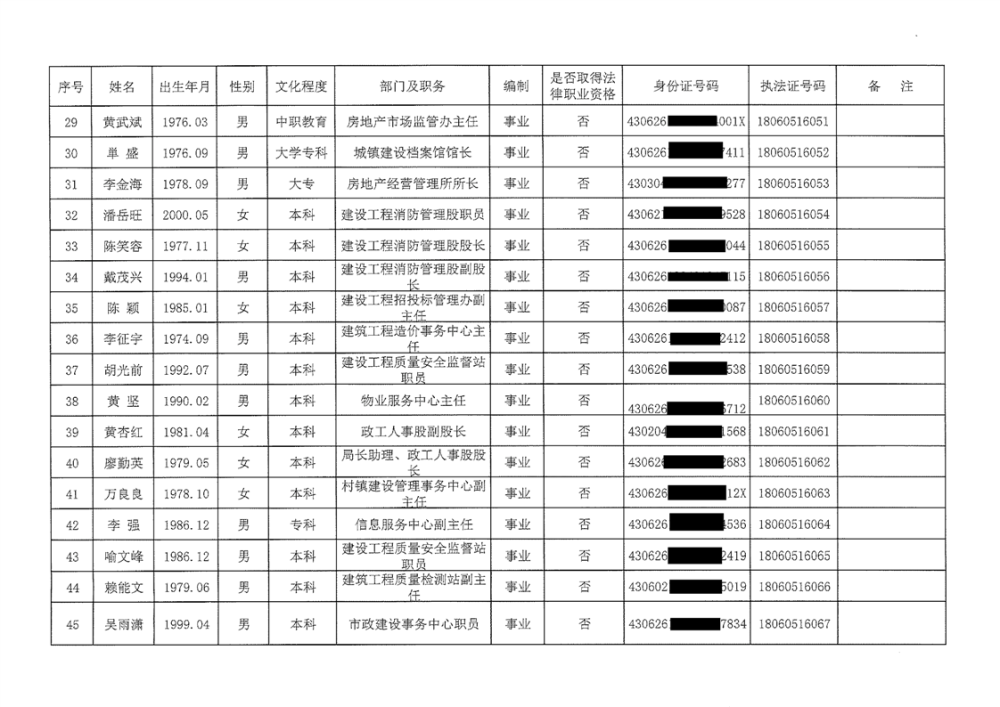 平江县住建局2026年行政执法证名单