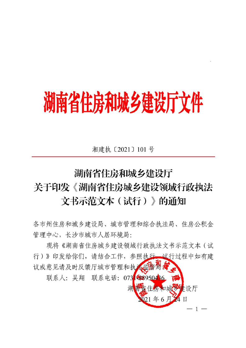 平江县城市管理和综合执法局省住建厅印发执法文书(试行)通知