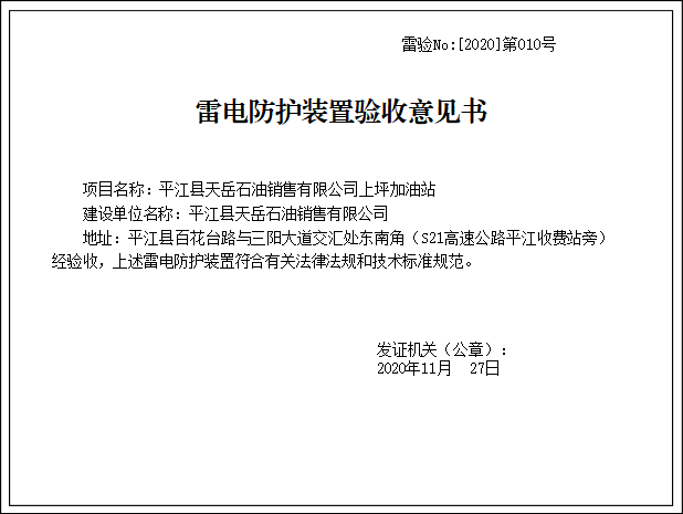 雷电防护装置验收意见书
