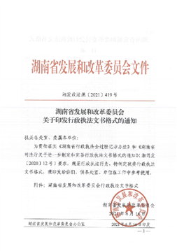湖南省发展和改革委员会《关于印发行政执法文书格式的通知》