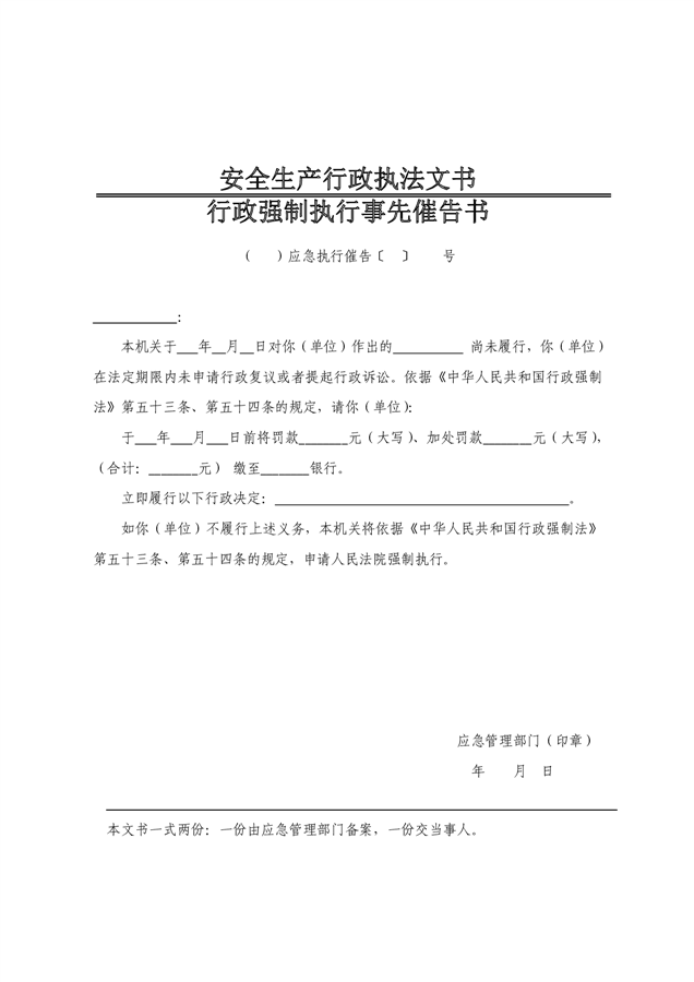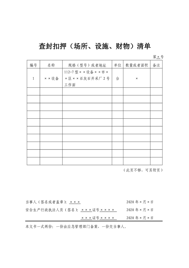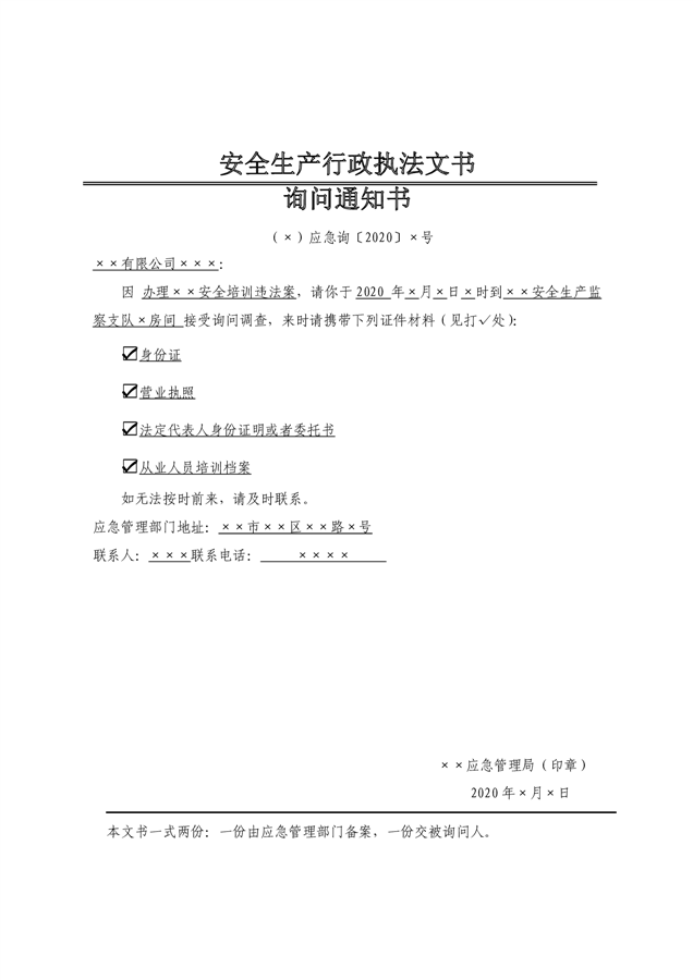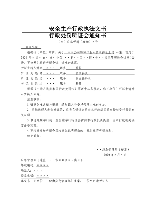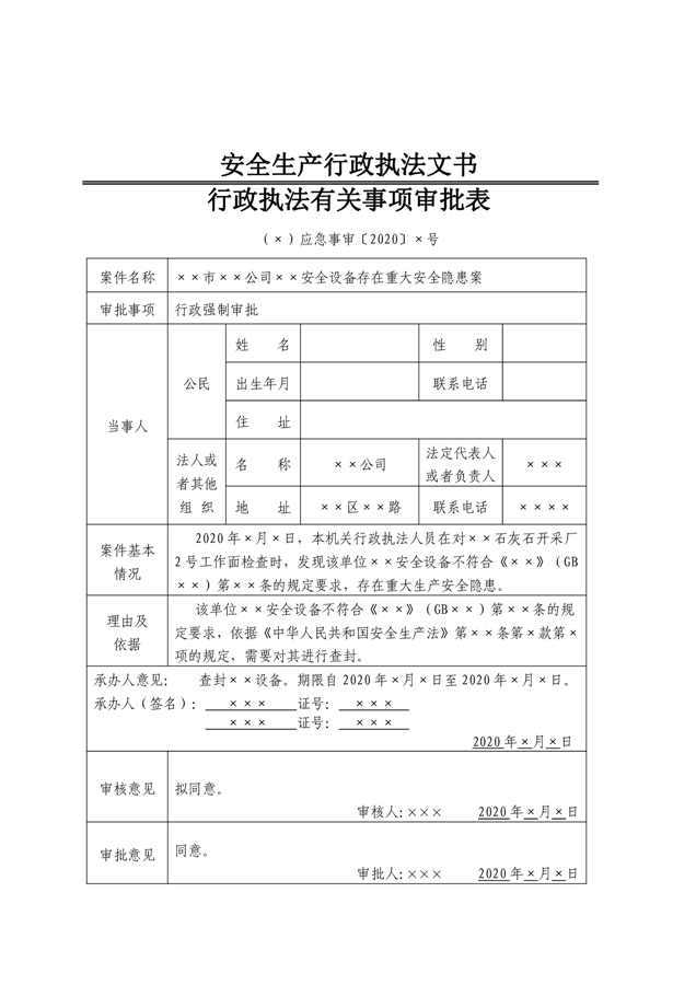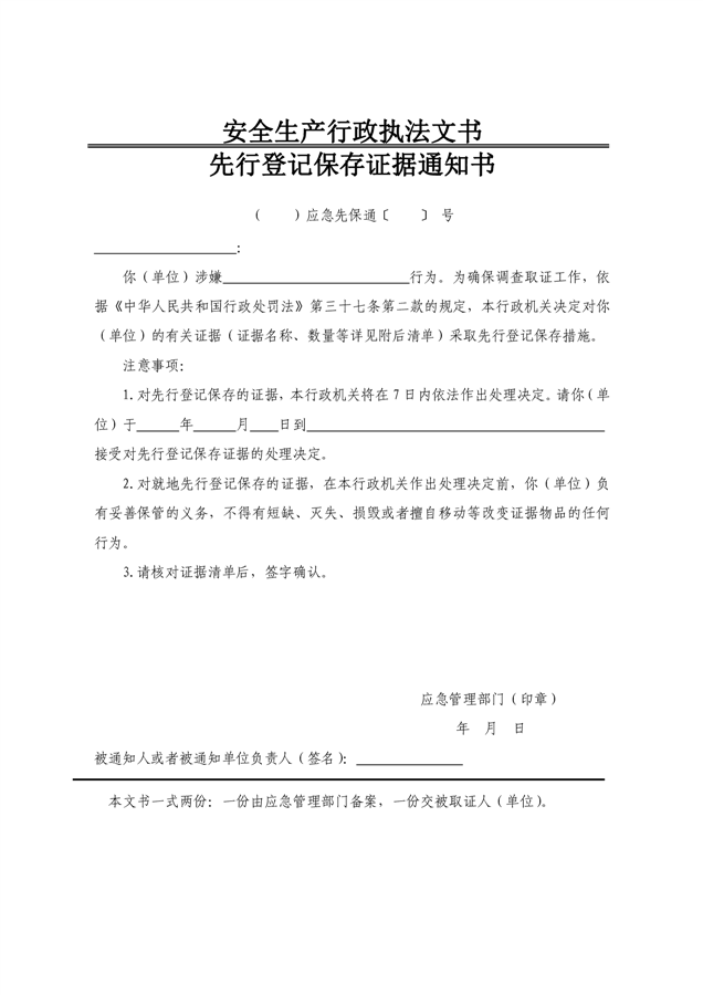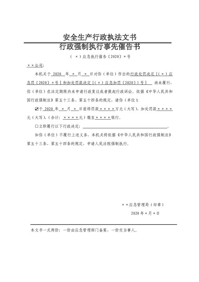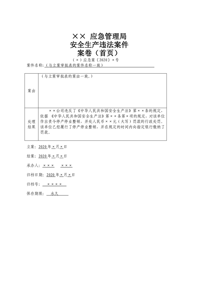 2023年县应急管理局安全生产行政执法文书式样及制作示范