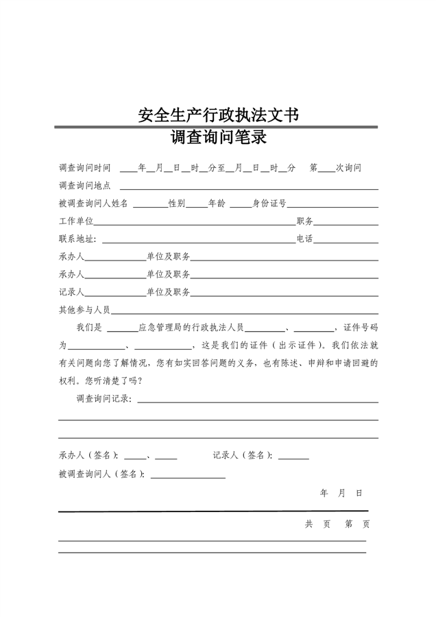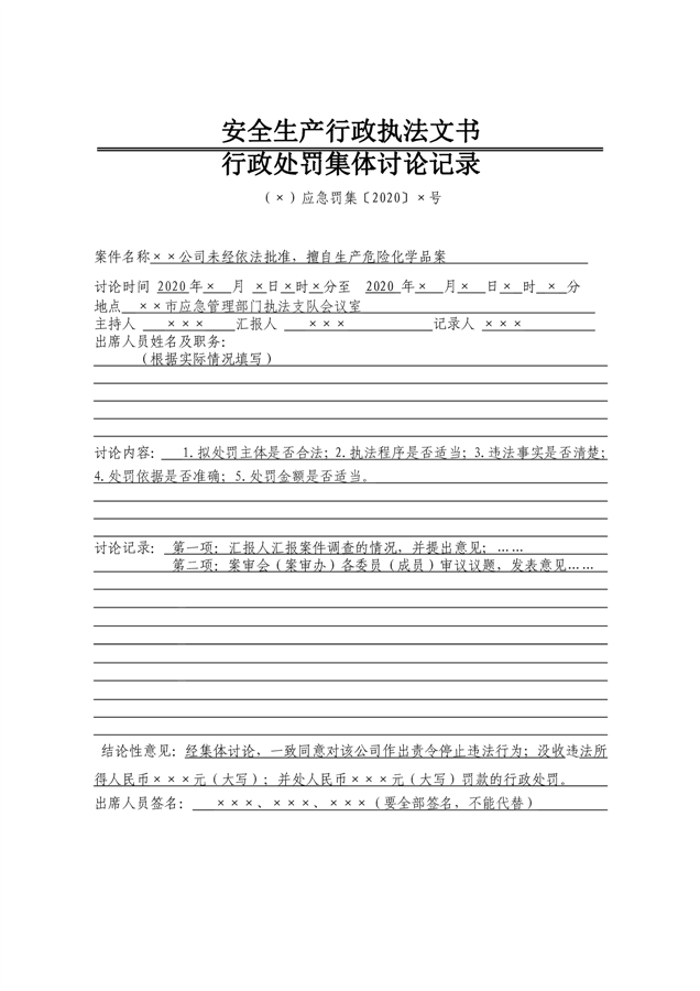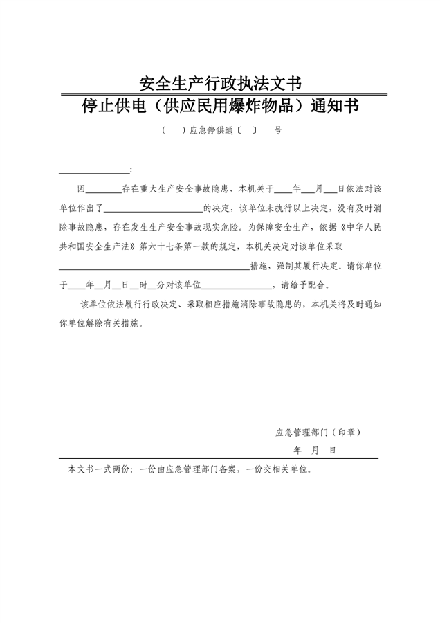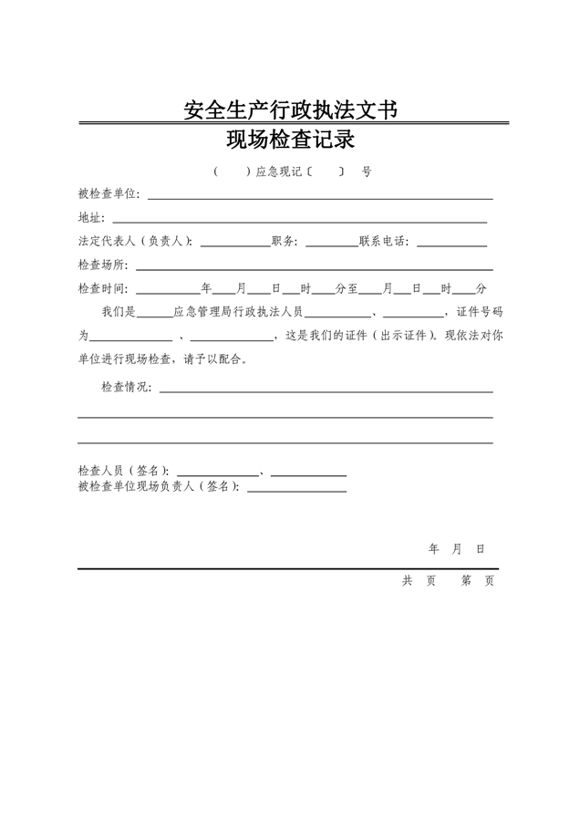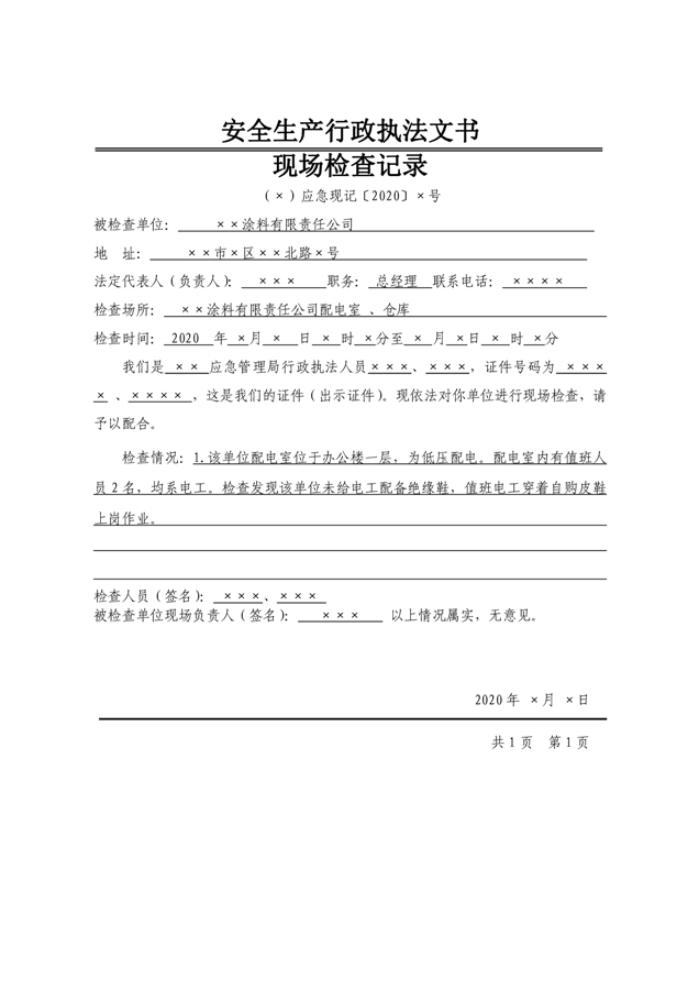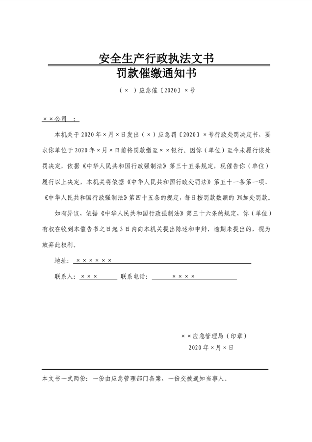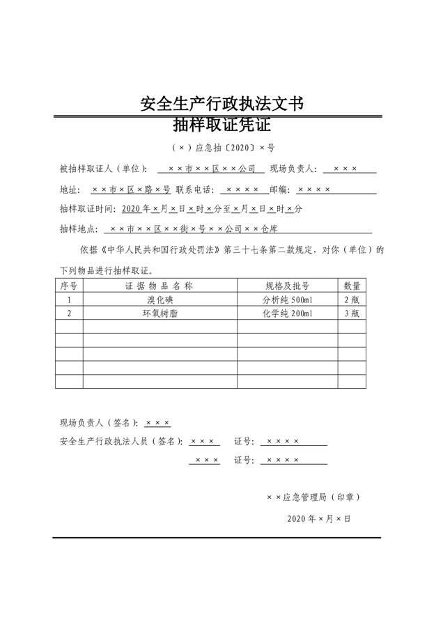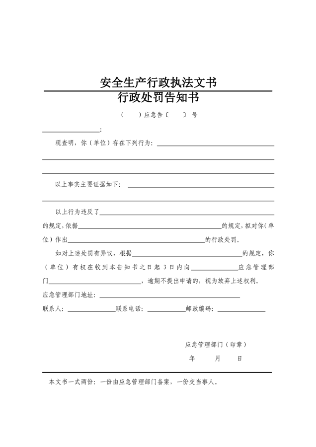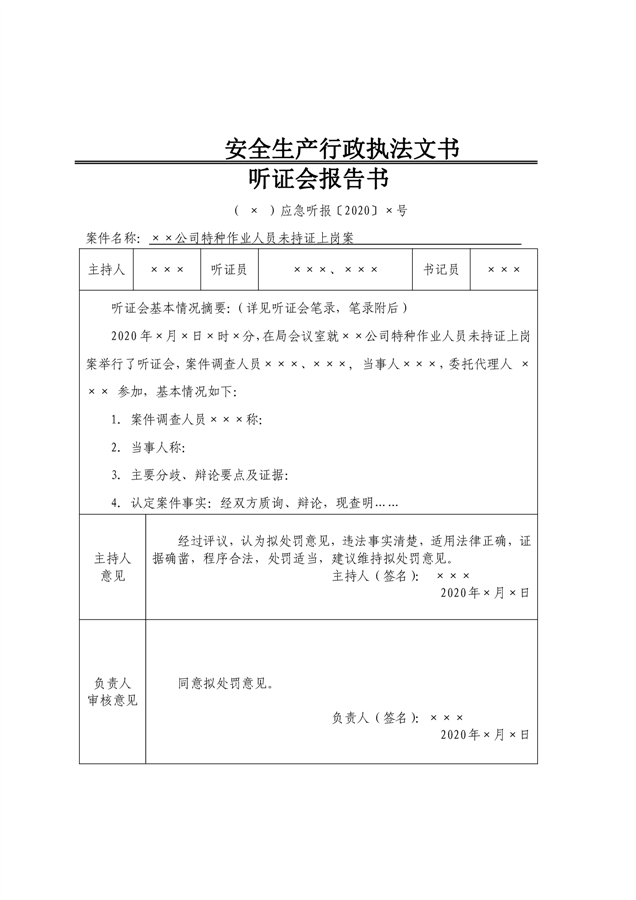 2023年县应急管理局安全生产行政执法文书式样及制作示范