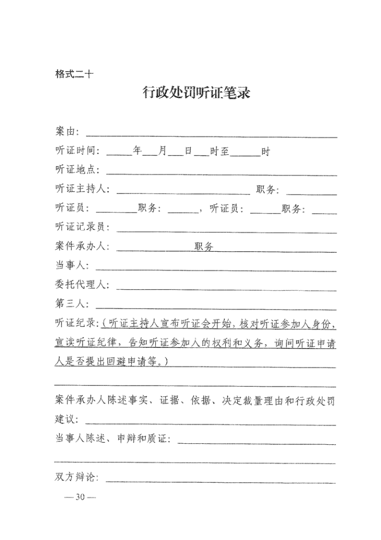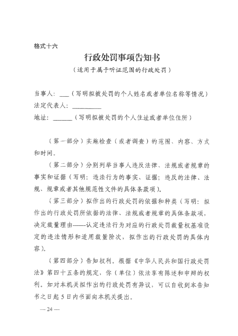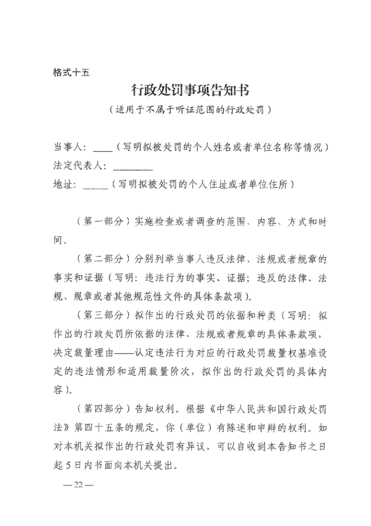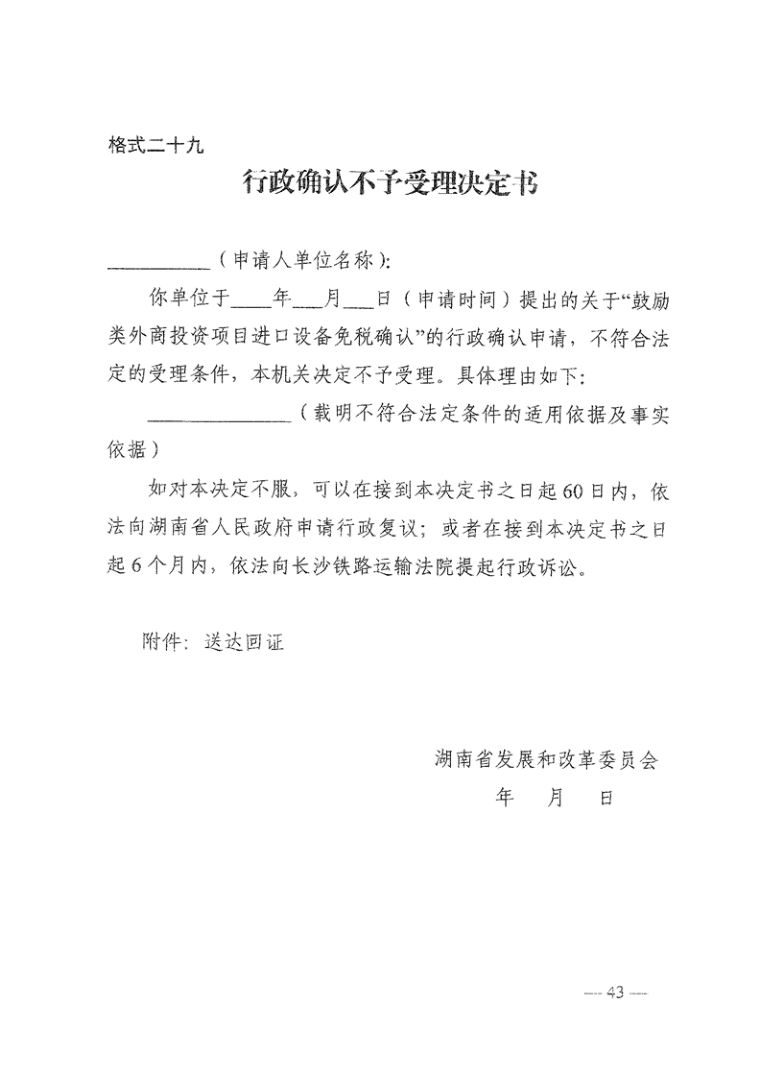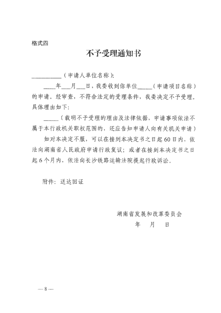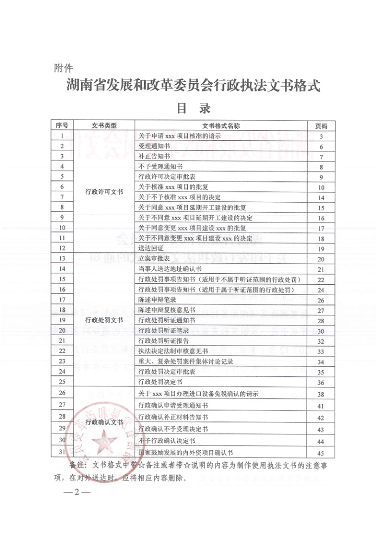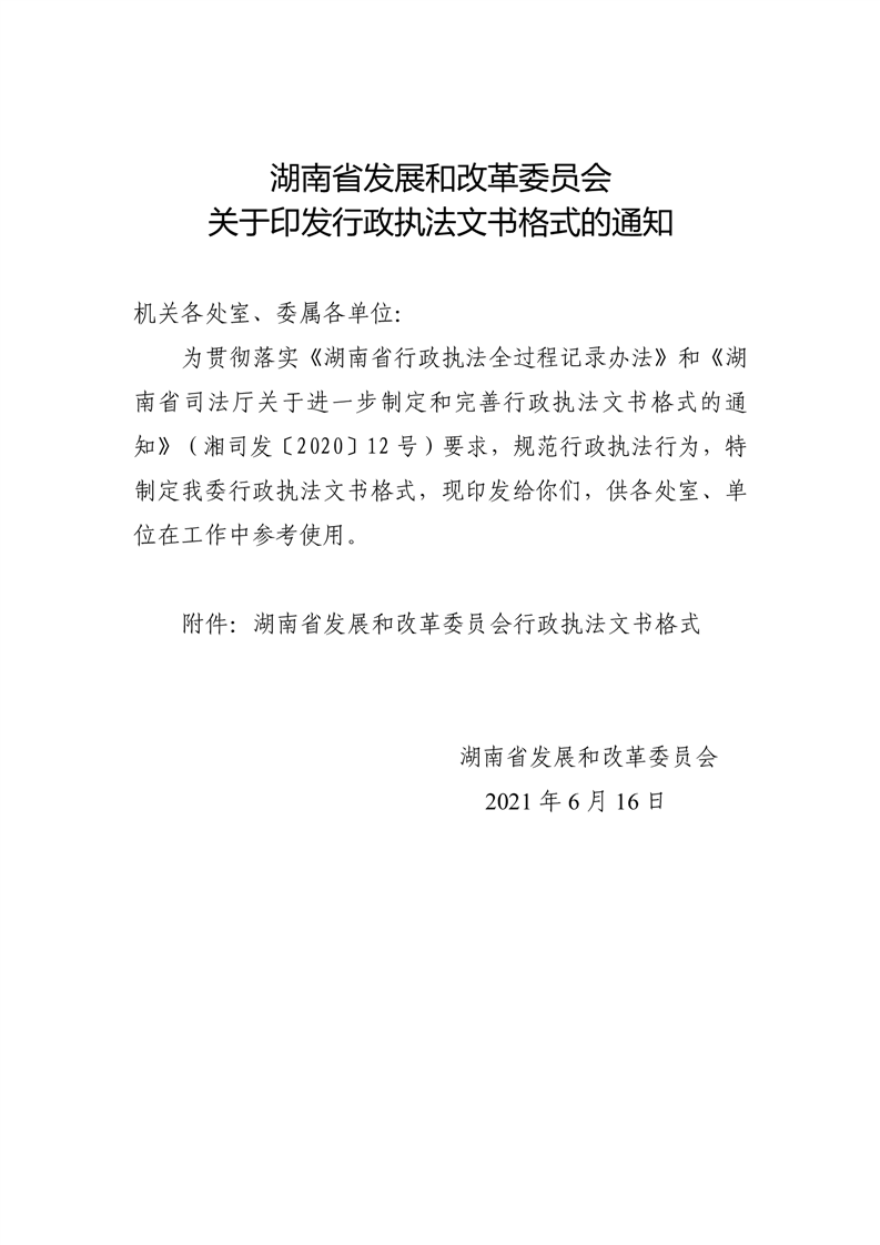 湖南省发展和改革委员会关于印发行政执法文书格式的通知