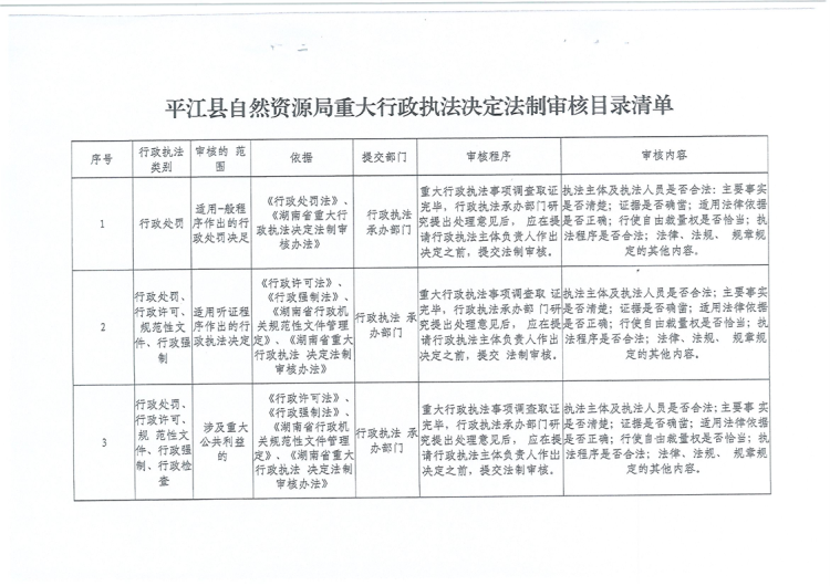 平江县自然资源局重大行政执法决定法制审核目录清单