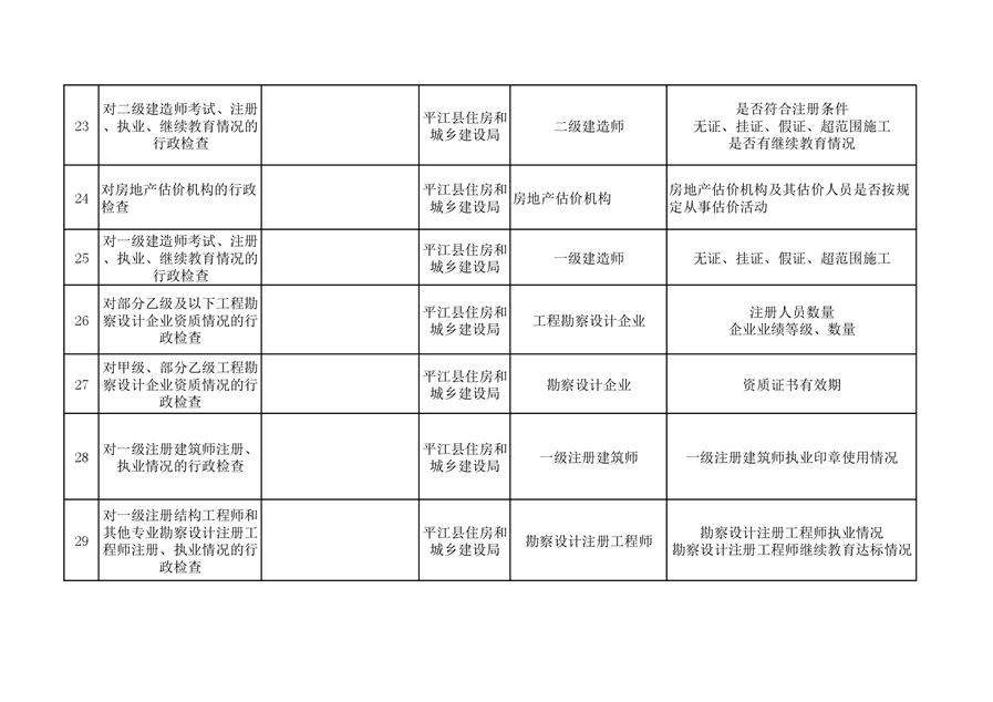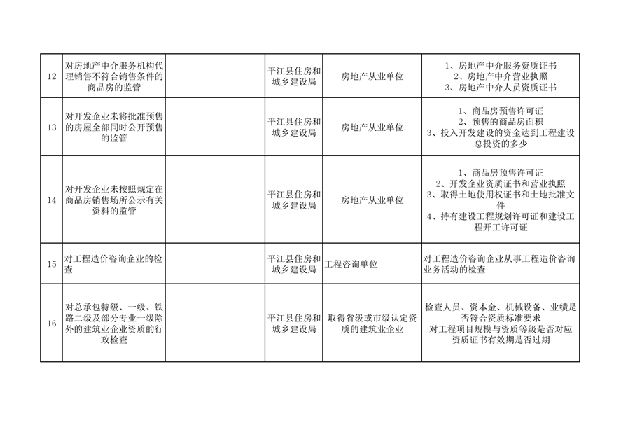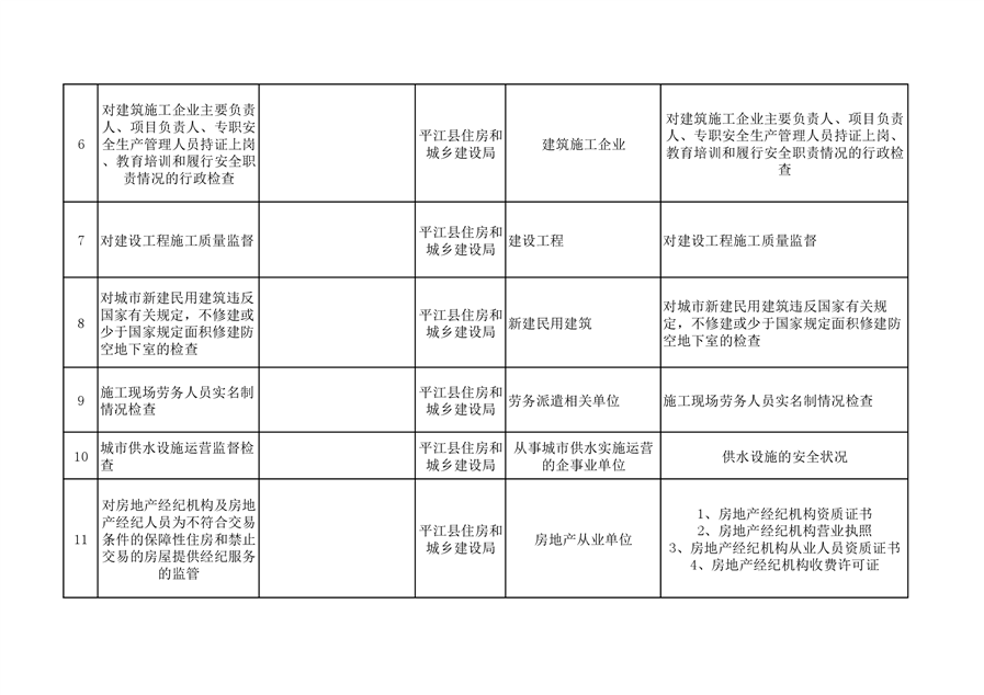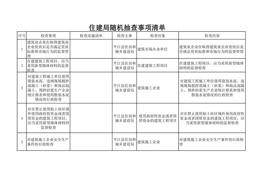 住建局随机抽查事项清单
