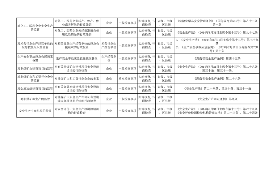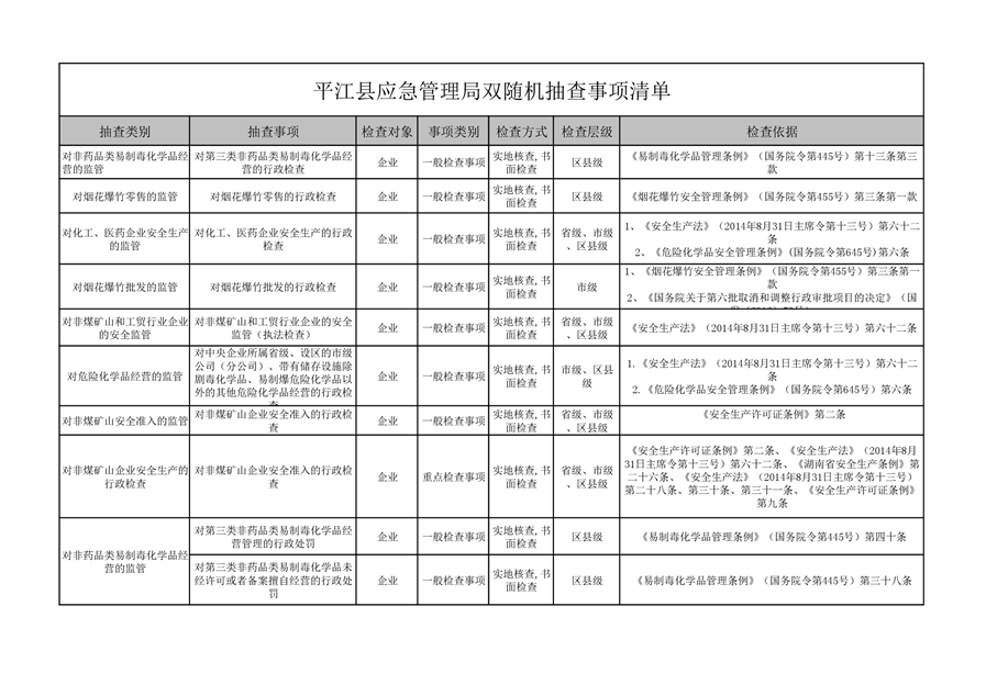 平江县应急管理局双随机抽查事项清单