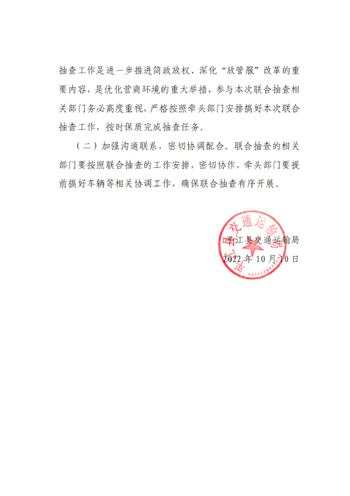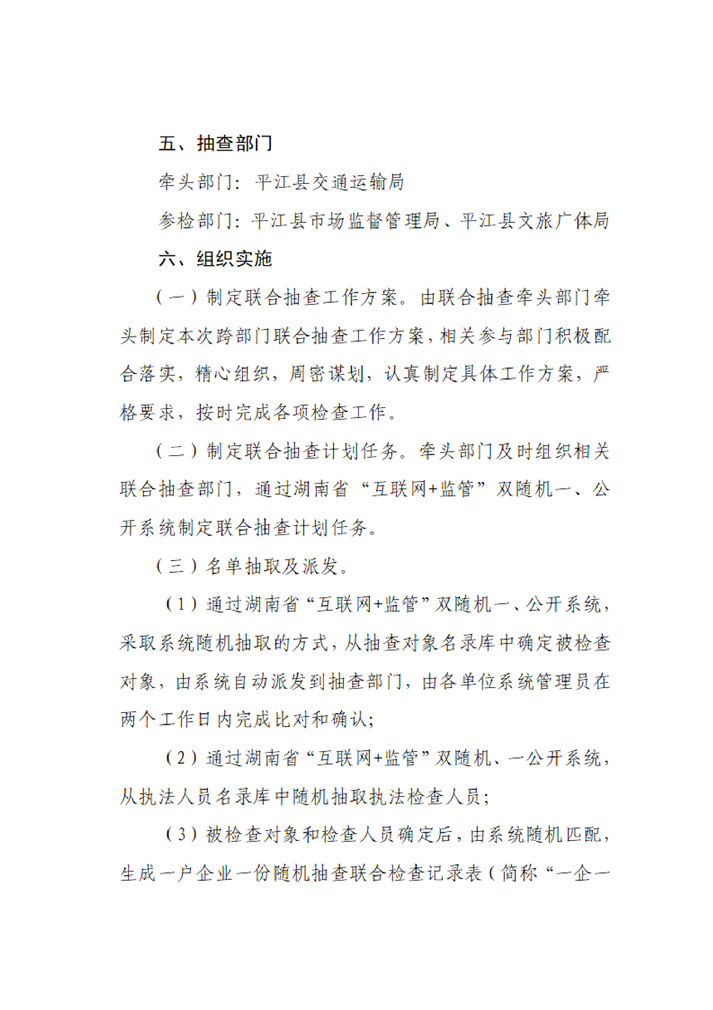 平江县交通运输局关于印发《平江县交通运输局2022年“双随机、一公开”专项抽查工作计划》的通知