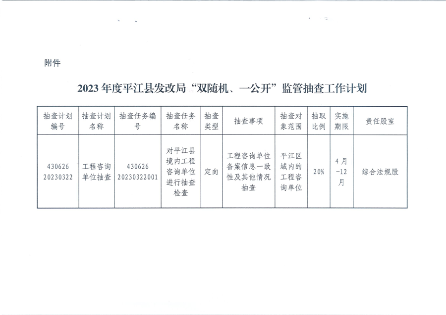 平江县发改局“双随机、一公开”监管抽查工作计划(2023年)