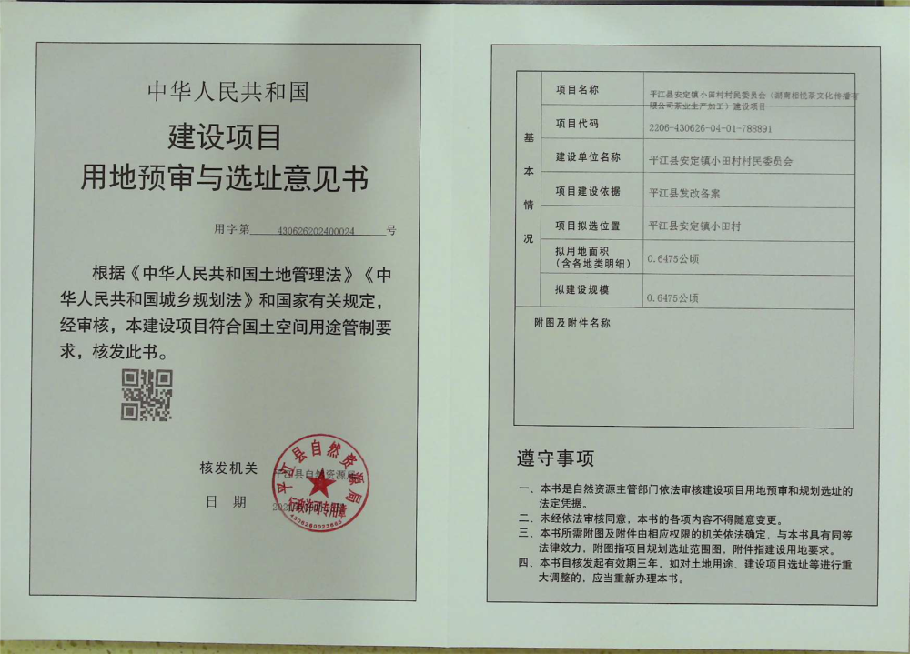 平江县安定镇小田村村民委员会(湖南相悦茶文化传播有限公司茶业生产加工)建设项目