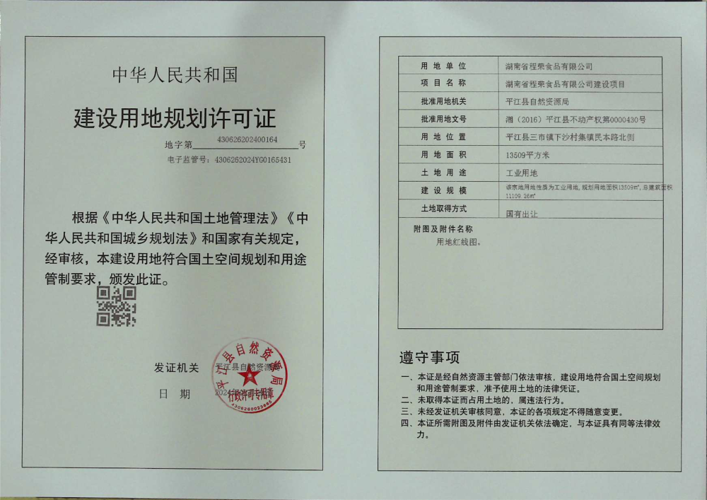 湖南省程荣食品有限公司建设项目