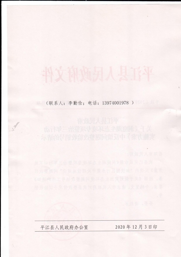 平江县人民政府关于《洞庭湖生态环境专项整治三年行动实施方案》中反馈问题整改验收销号的请示