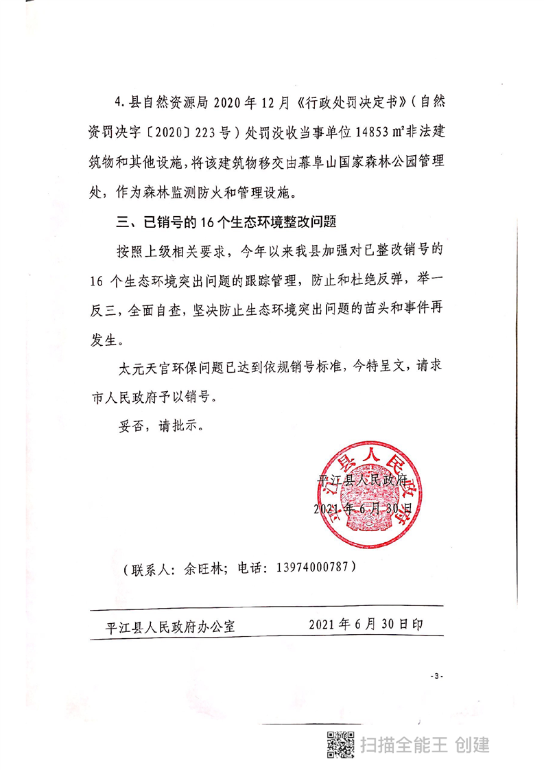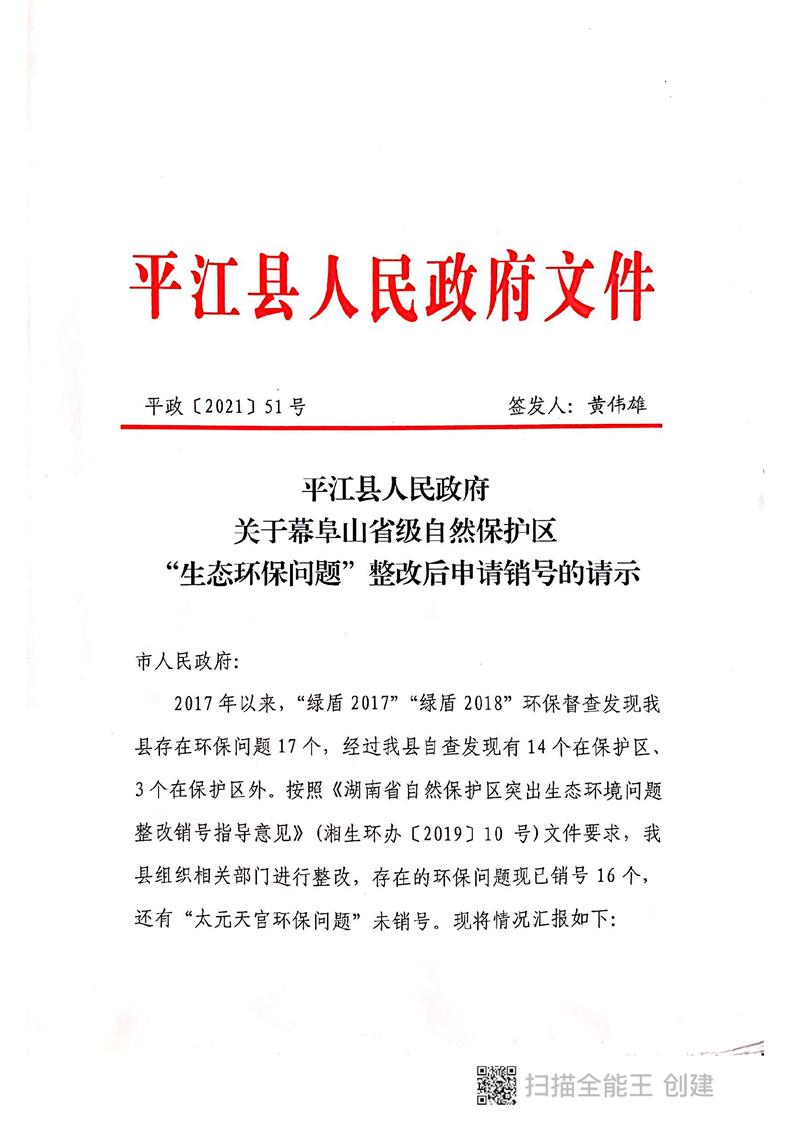 关于幕阜山省级自然保护区“生态环保问题”整改后申请销号的请示