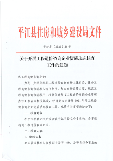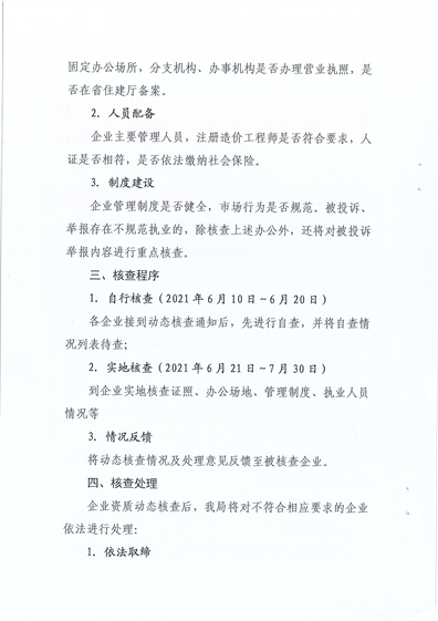 关于开展工程造价咨询企业资质动态核查工作的通知