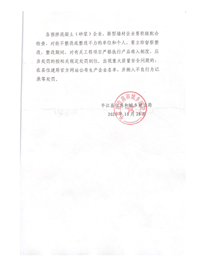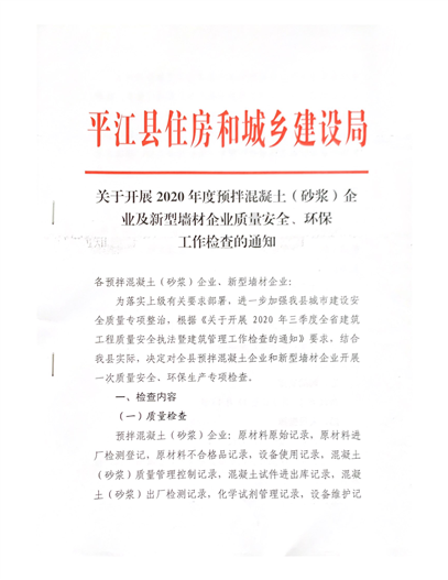 关于开展2020年度预拌混凝土(砂浆)企业及新型墙材企业质量安全、环保工作检查的通知