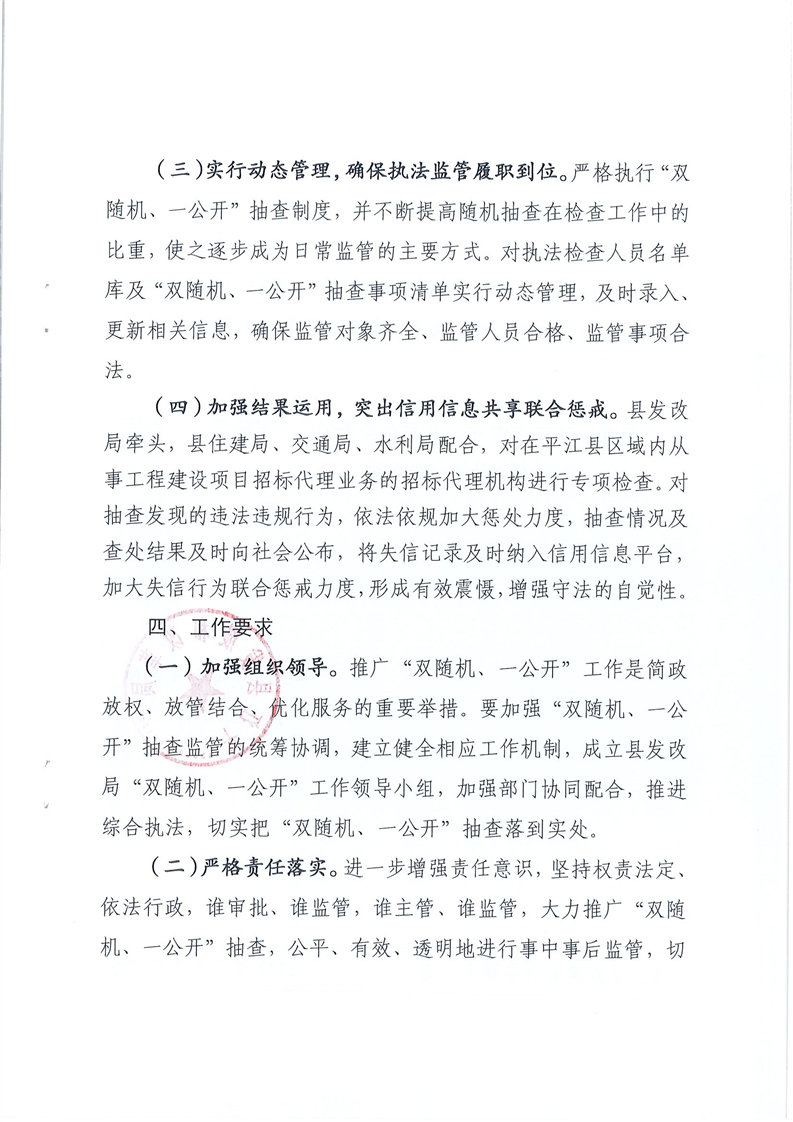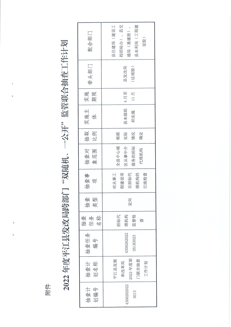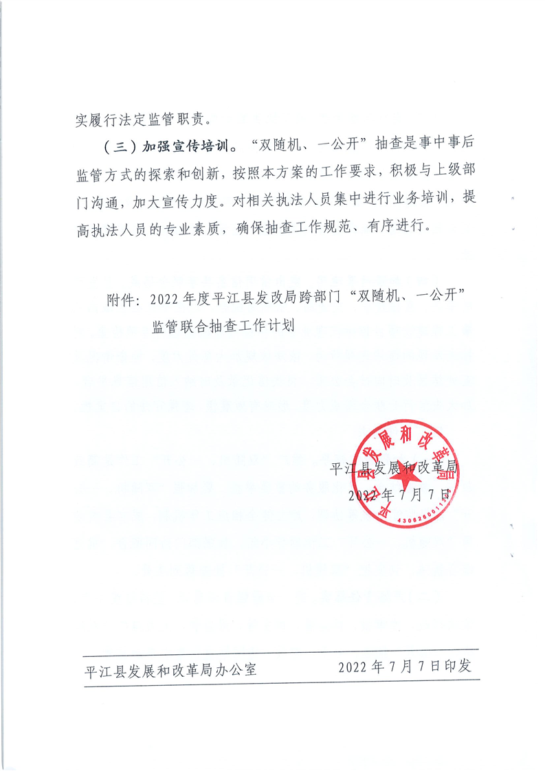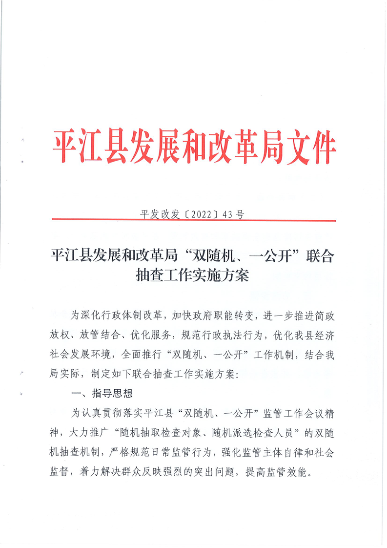 平江县发展和改革局“双随机、一公开”联合抽查工作实施方案