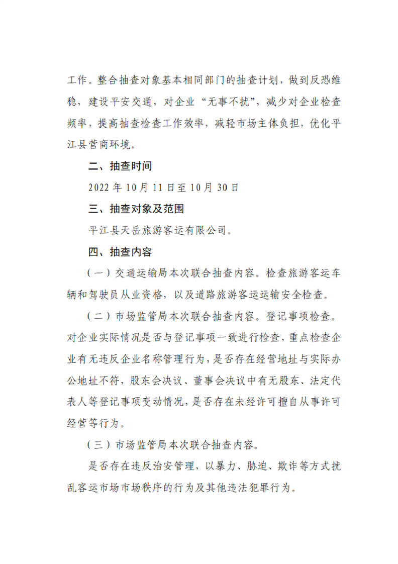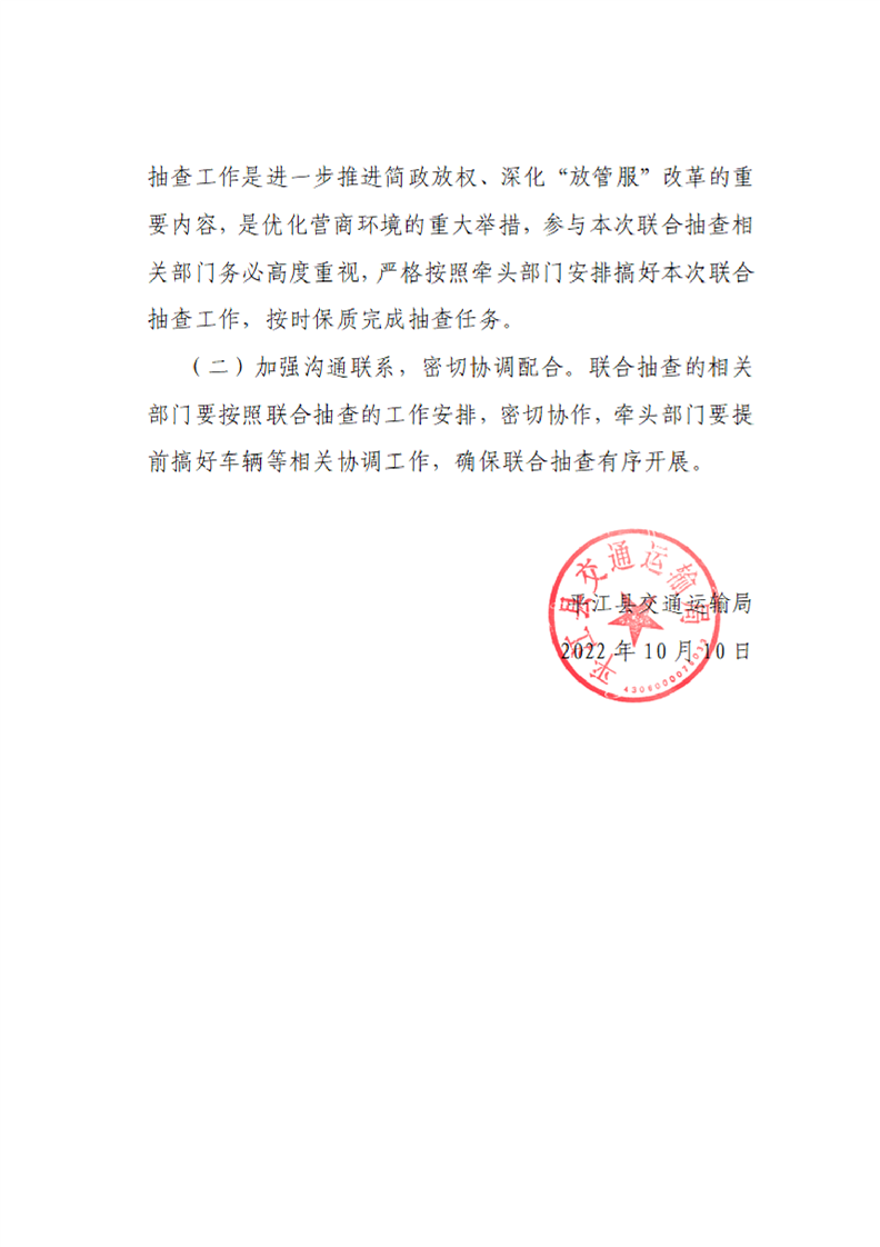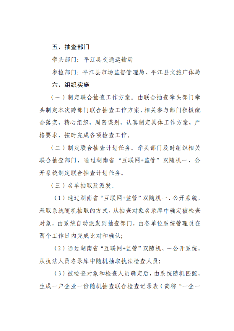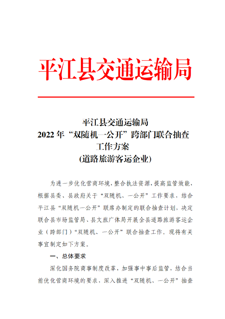 平江县交通运输局2022年“双随机、一公开”专项抽查工作计划