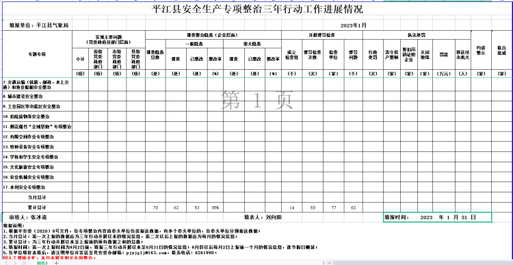 平江县安全生产专项整治三年行动工作进展情况(1月)