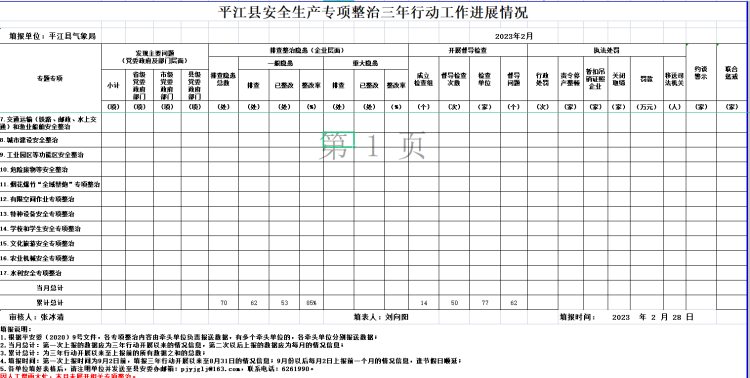 平江县安全生产专项整治三年行动工作进展情况(2月)