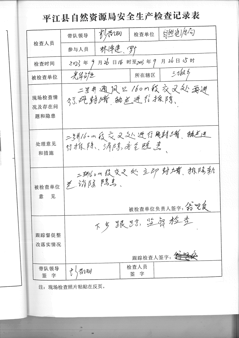 光华矿业安全生产检查记录表