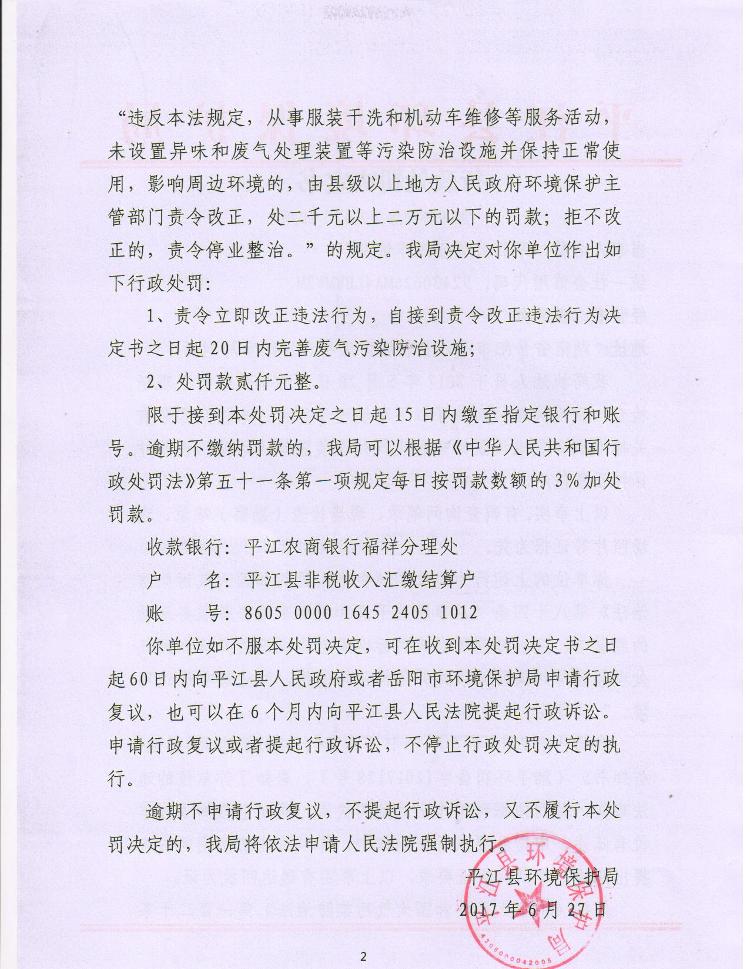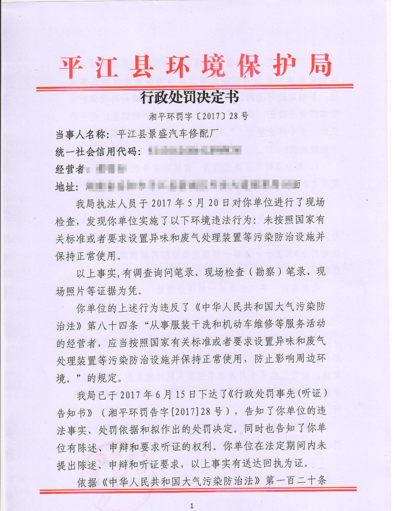景盛汽修处罚决定书