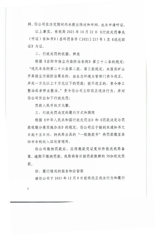 平江县伍市镇海力石材有限公司215号行政处罚决定书