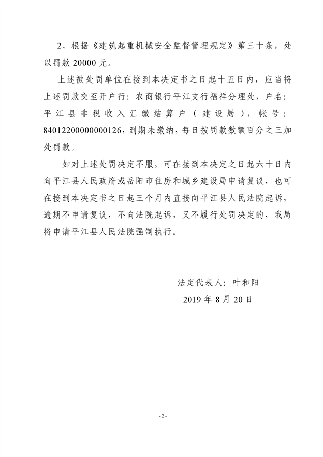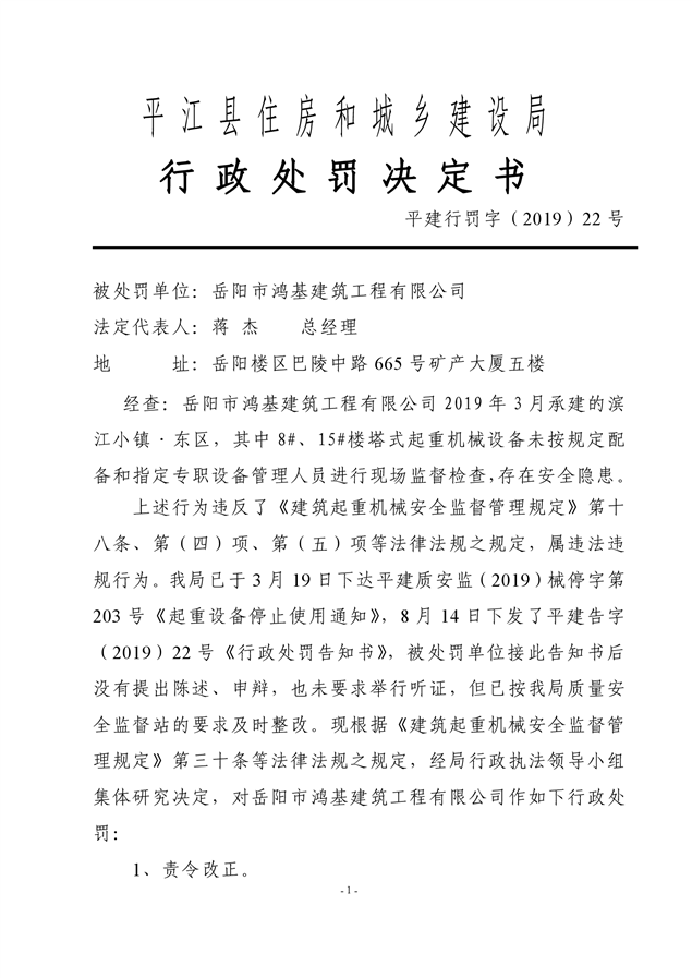 行政处罚决定书平建行罚字(2019)22号