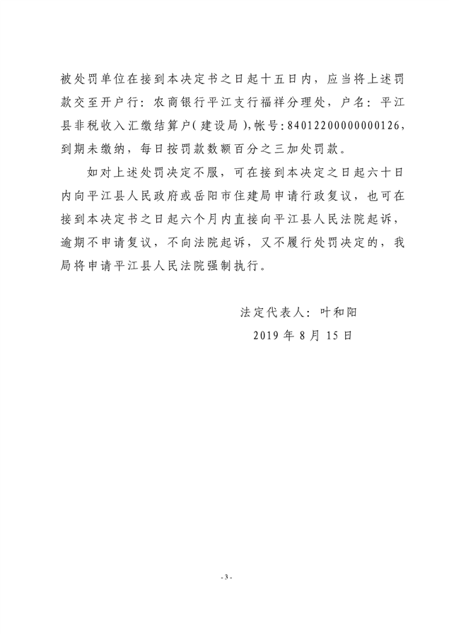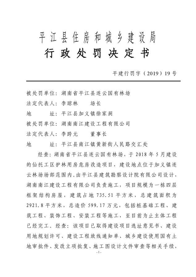 行政处罚决定书平建行罚字(2019)19号