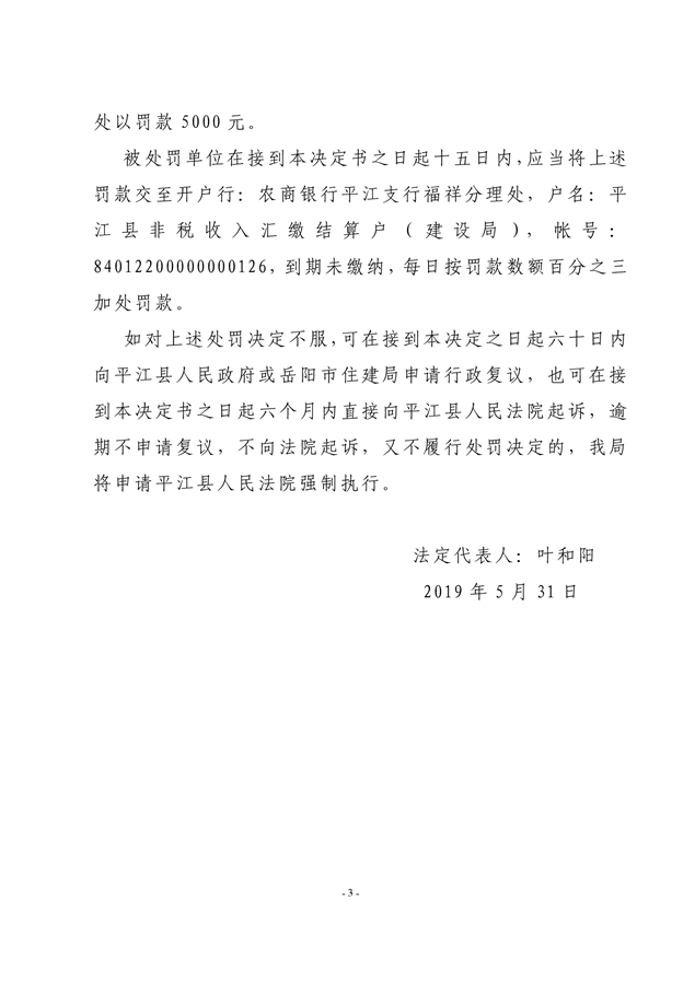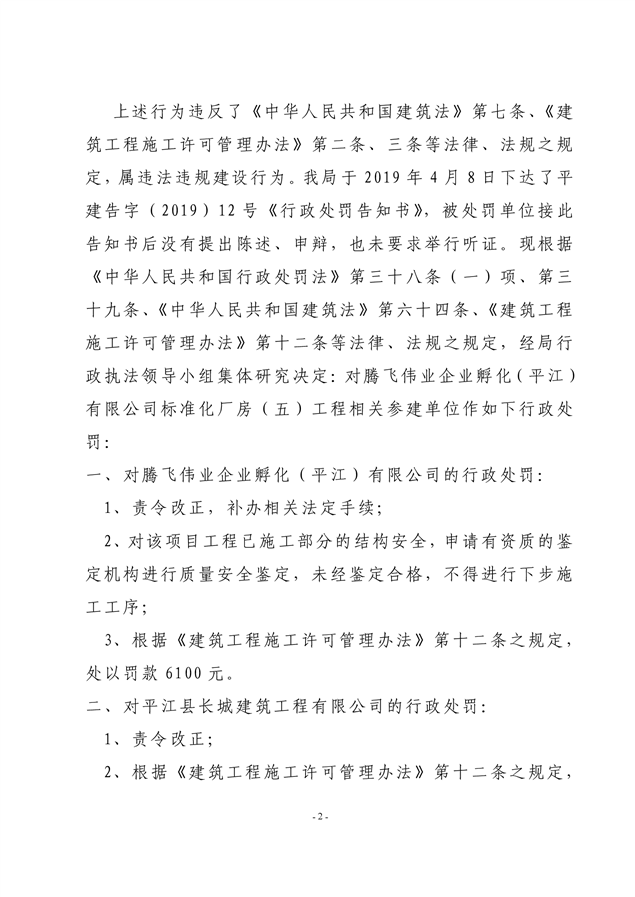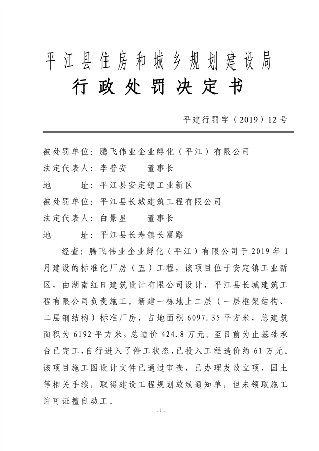 行政处罚决定书平建行罚字(2019)12号