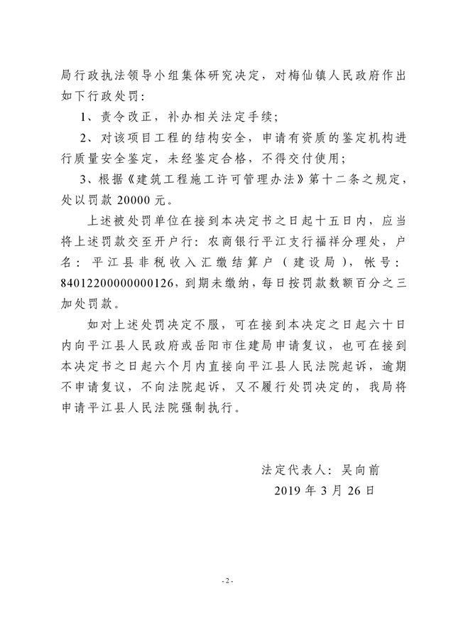 行政处罚决定书平建行罚字(2019)6号