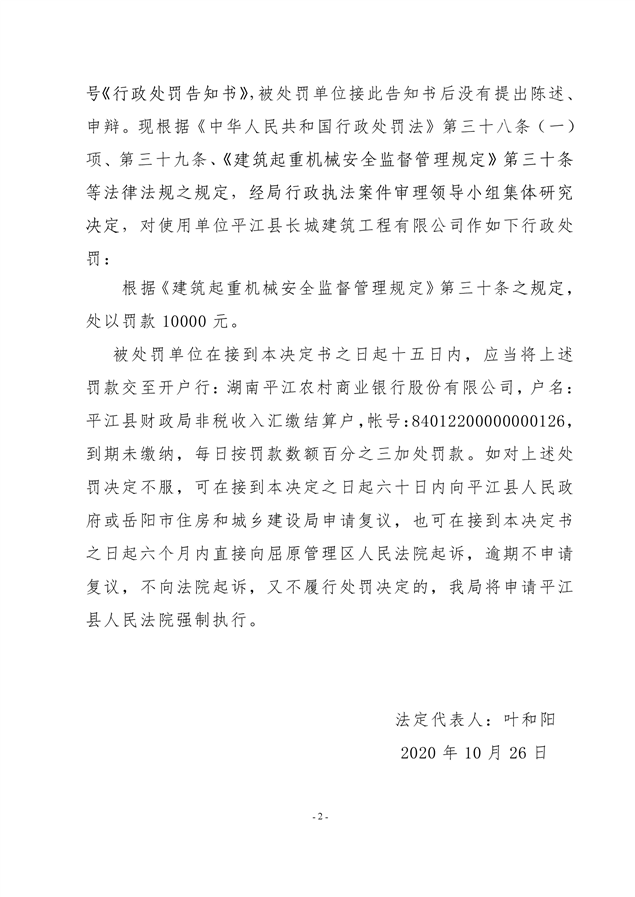 行政处罚决定书平建行罚字(2020)22号