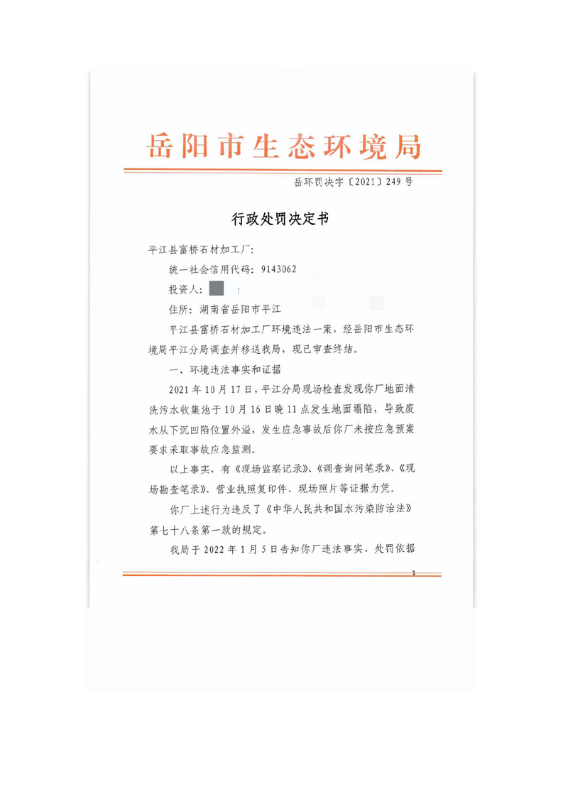 岳环罚决字[2021]249号