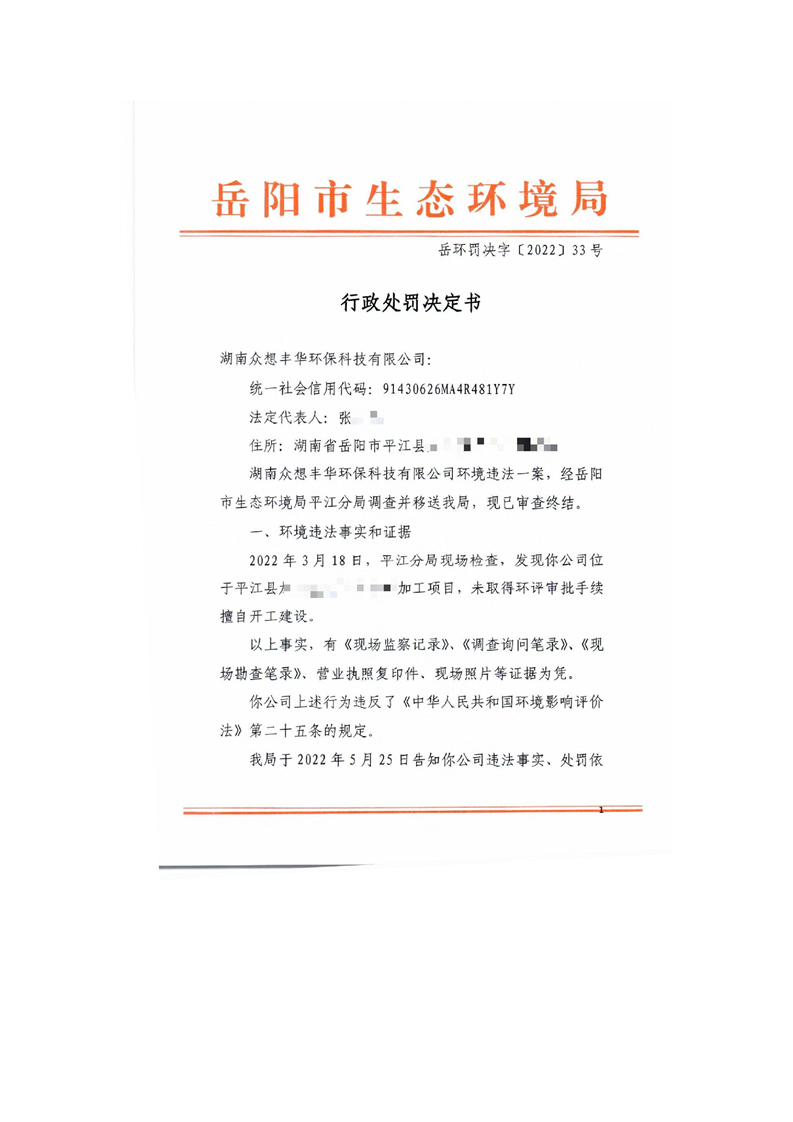 岳环罚字〔2022〕33号