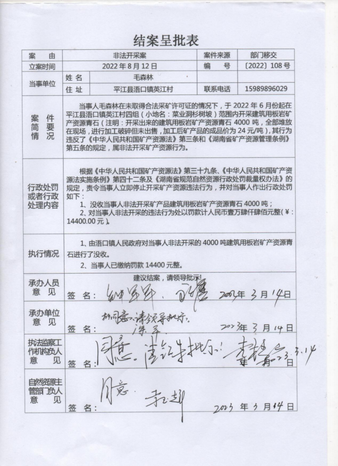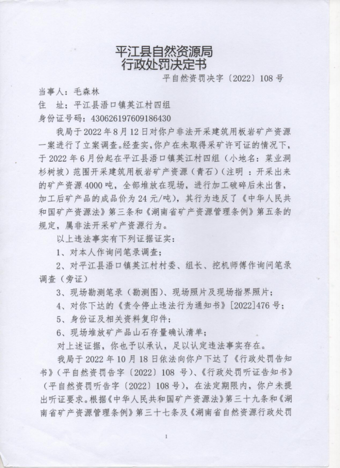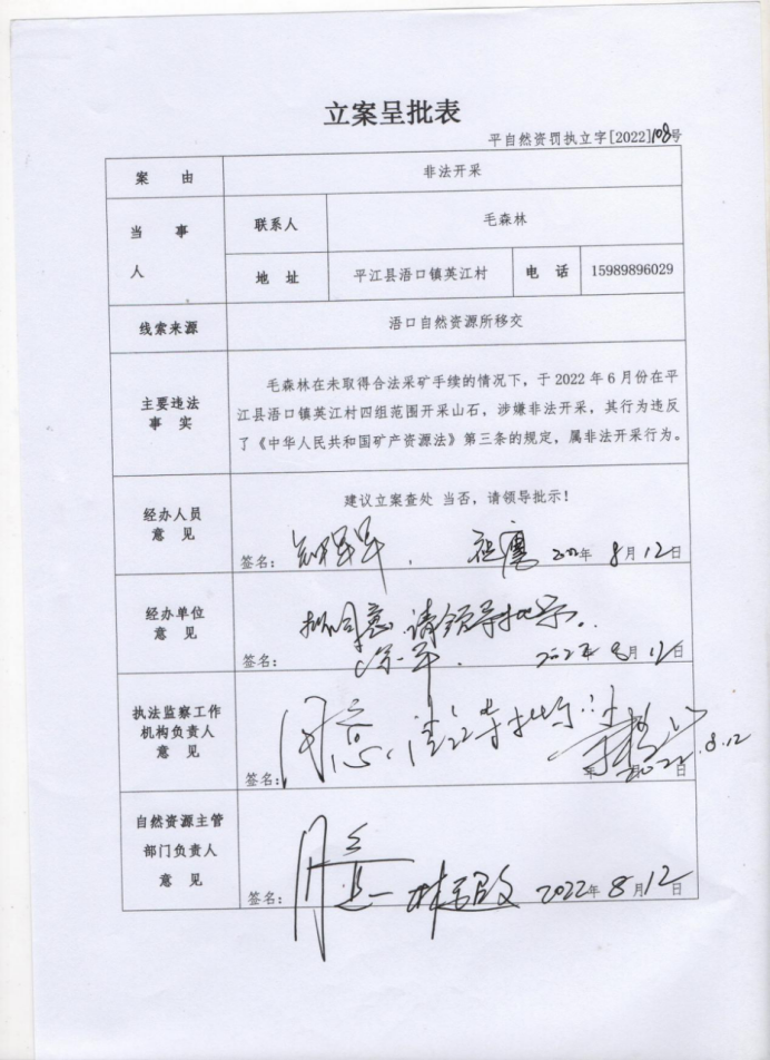 毛森林非法开采案