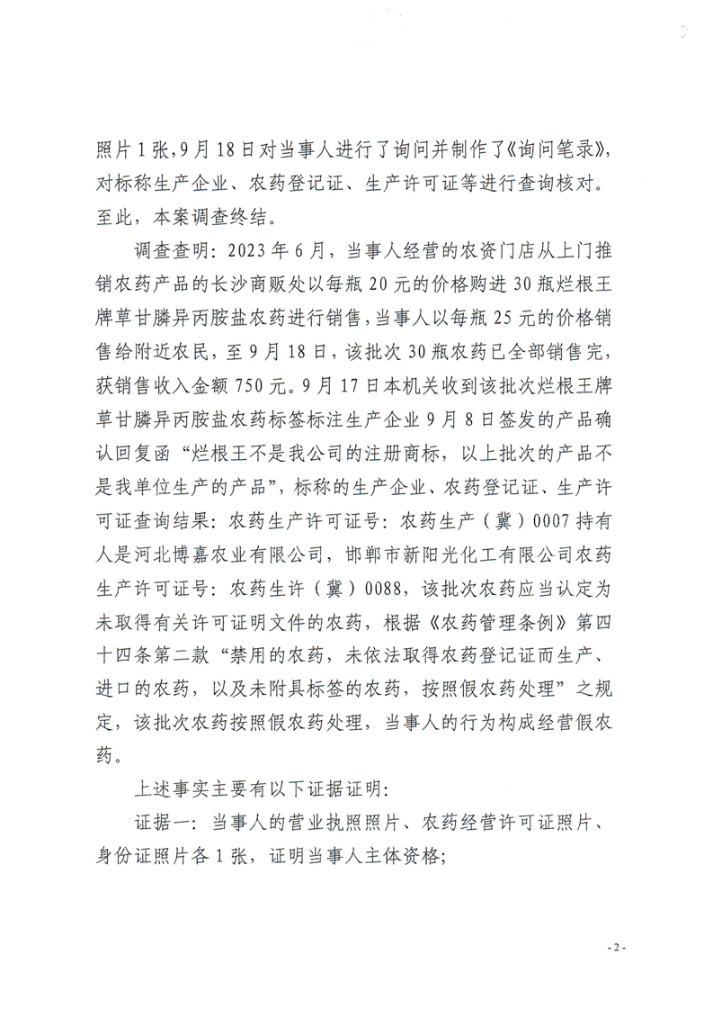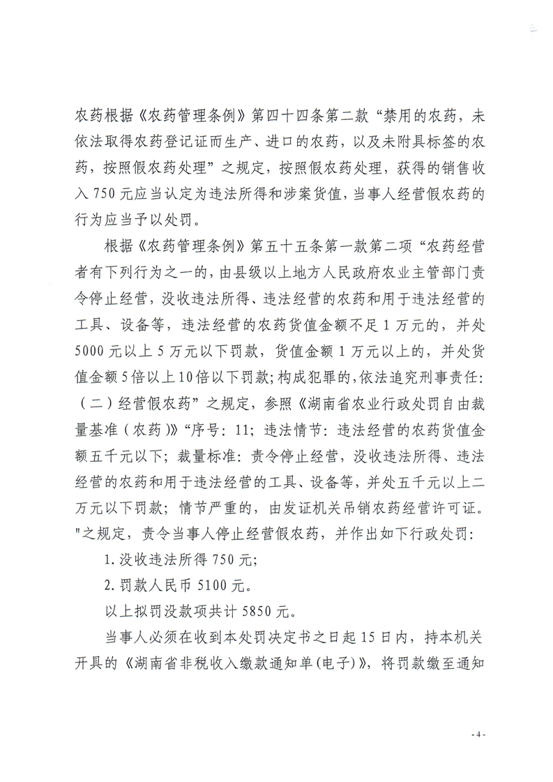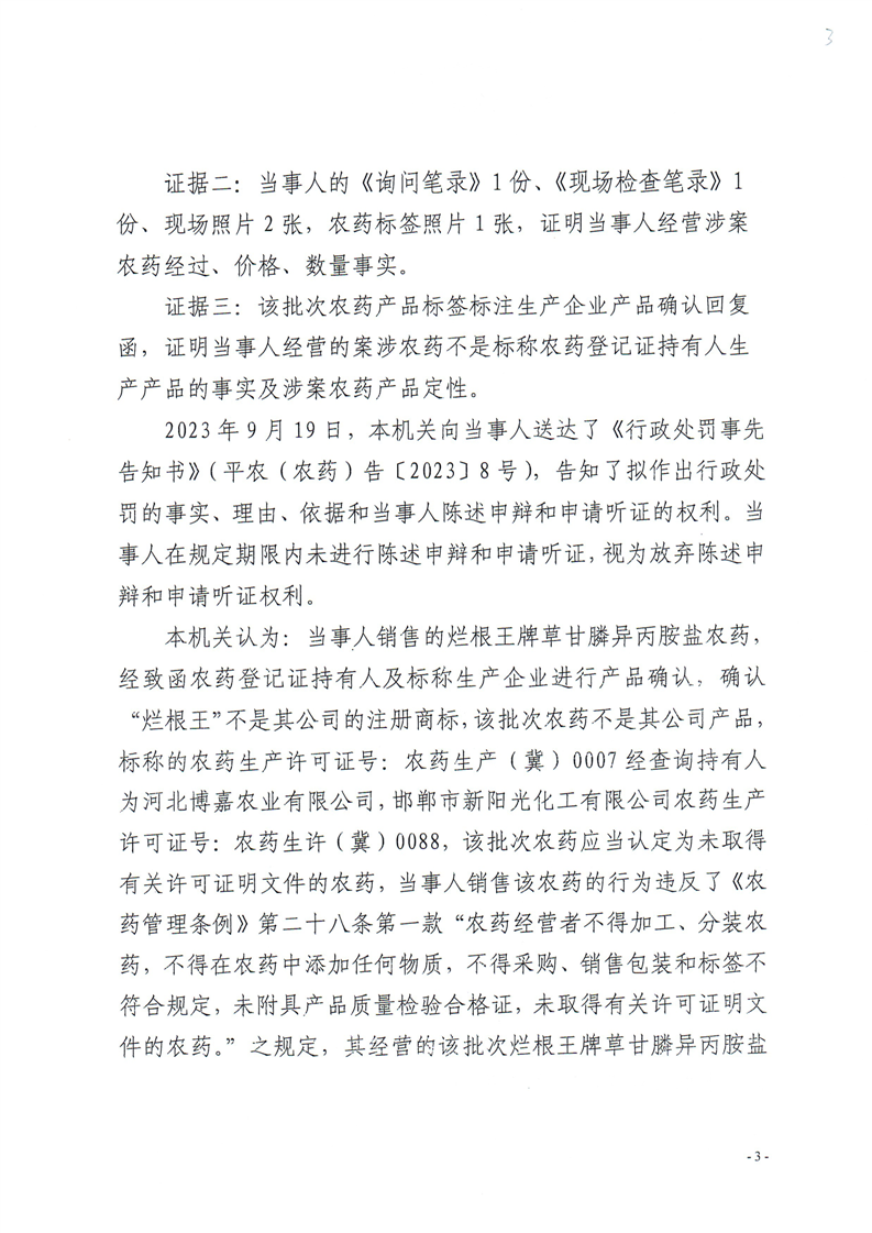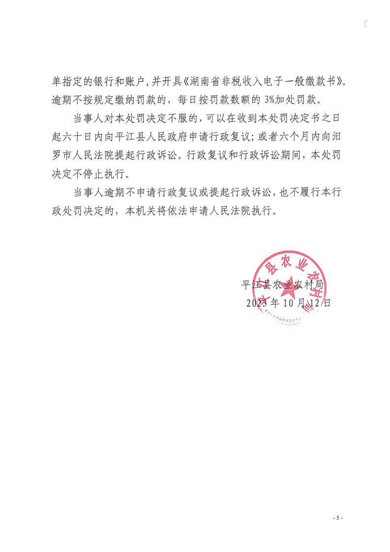 平江县农业农村局行政处罚决定书 平农(农药)罚〔2023〕8号